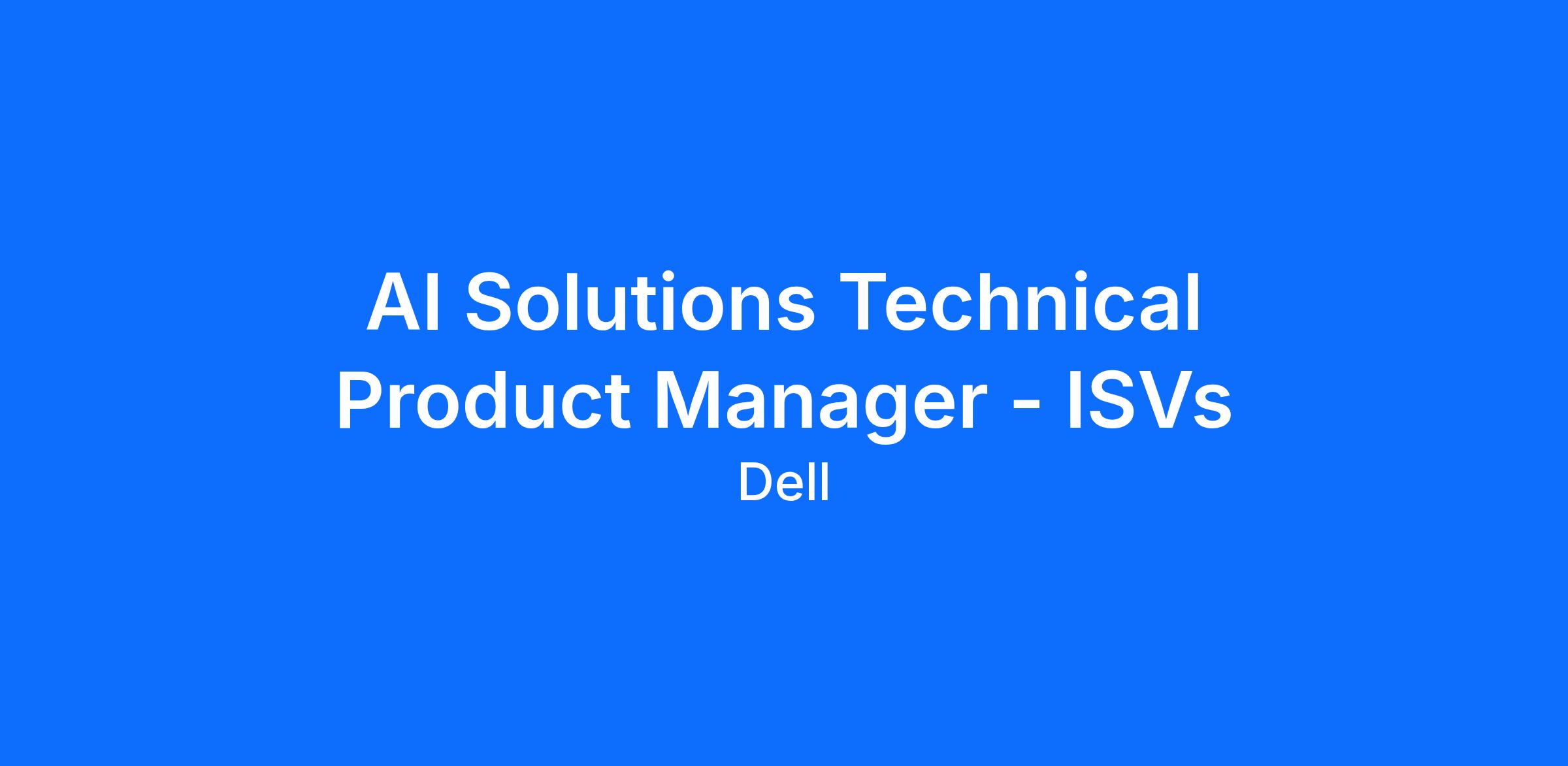 As a Technical Product Manager for the AI ISV Partner Program, you will drive the strategy, evolution, and execution of Dell’s AI ecosystem for growth and community ISVs. This role blends AI industry domain knowledge, AI platform strategy, and partner ecosystem experience.