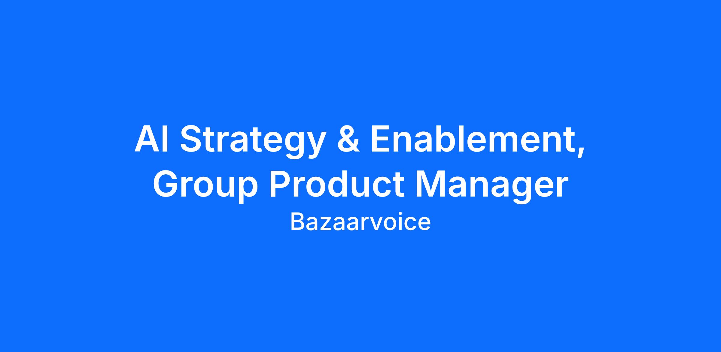Bazaarvoice is seeking an AI Group Product Manager to lead our AI infrastructure and enablement strategy. This role will own the AI capabilities across our Ratings & Reviews platform, ensuring we're positioned at the forefront of AI-driven shopping and discovery. As AI transforms how consumers discover and evaluate products, this role will be critical in expanding how Bazaarvoice's trusted user-generated content (UGC) becomes discoverable and actionable through AI platforms like OpenAI, Anthropic, Google, and other large language models