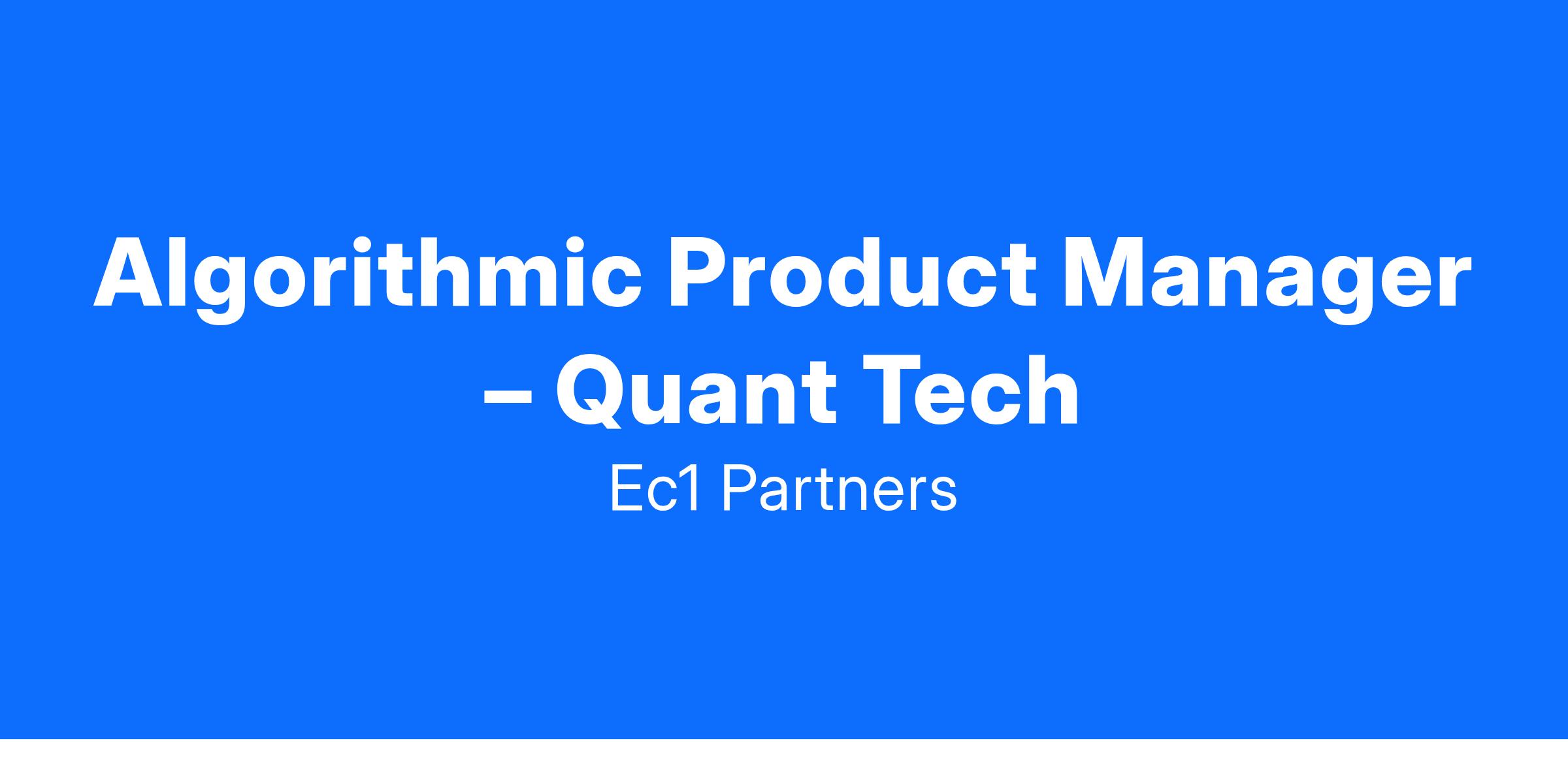 EC1 Partners has won an exclusive mandate to support a next-generation FinTech firm building modular tools for systematic trading desks. Headquartered in New York and backed by top-tier investors, the firm is scaling its platform to support everything from signal research to execution. They are hiring an Algorithmic Product Manager to help define and lead the roadmap for core quant trading features.