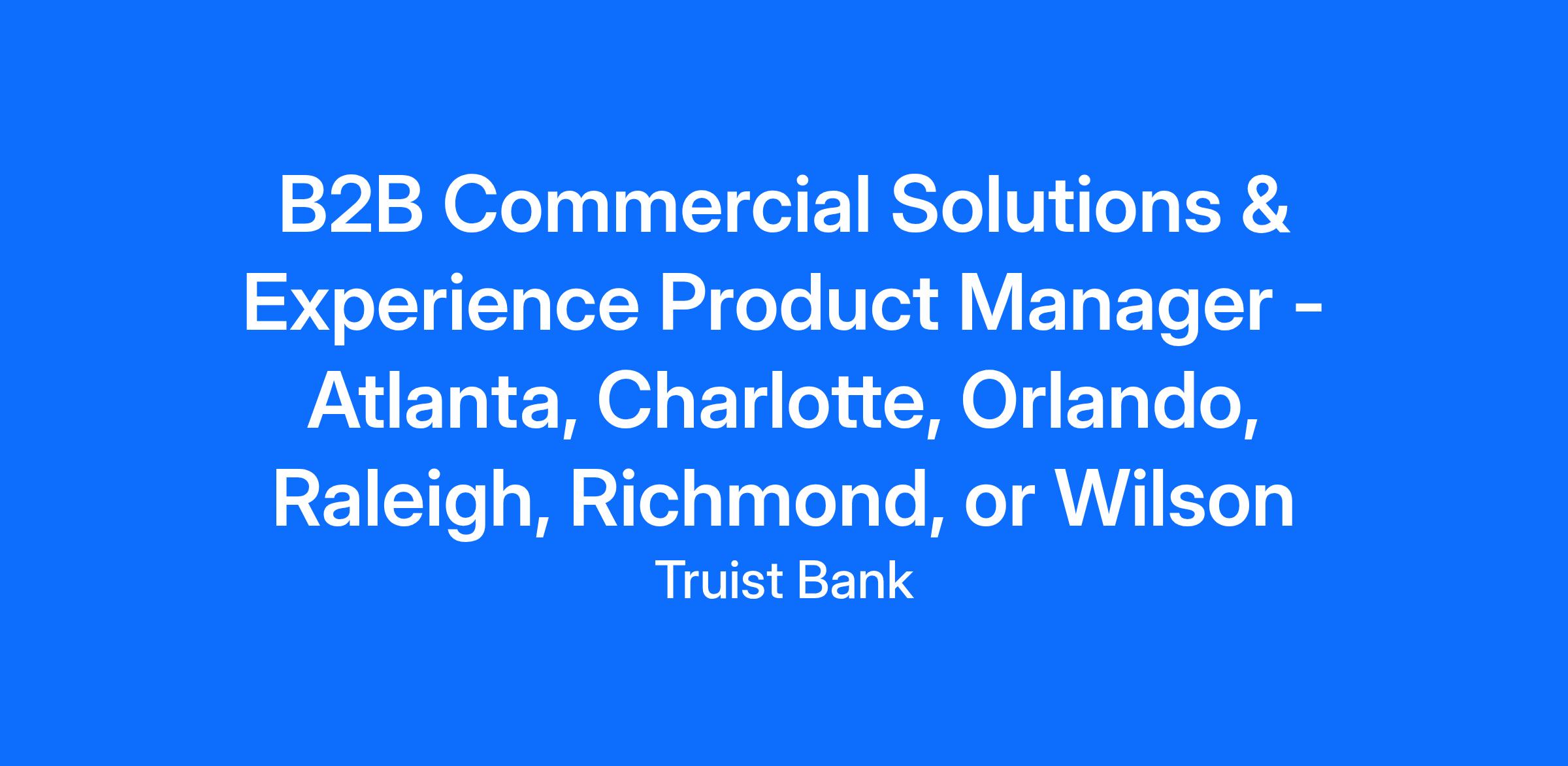 The Customer Solutions & Experience Product Manager II is a senior role on the Commercial Card Product Management Team at Truist. We are seeking an experienced and strategic B2B Customer Solutions & Experience product manager to lead the development and growth of our Commercial Card programs, both physical and virtual. Ideal candidate will have a strong understanding of B2B payments, extensive knowledge and working experience with TSYS platforms and ancillary platforms such as alerts. Understanding the end to end lifecycle from when a card is ordered, received, authenticated, activated and tokenized. Deep understanding of transaction authorizations and clearing, including supporting file transmission services. You will be responsible for defining the product road map collaborating across internal teams and driving the success of the initiatives from concept to execution. Key responsibilities include: