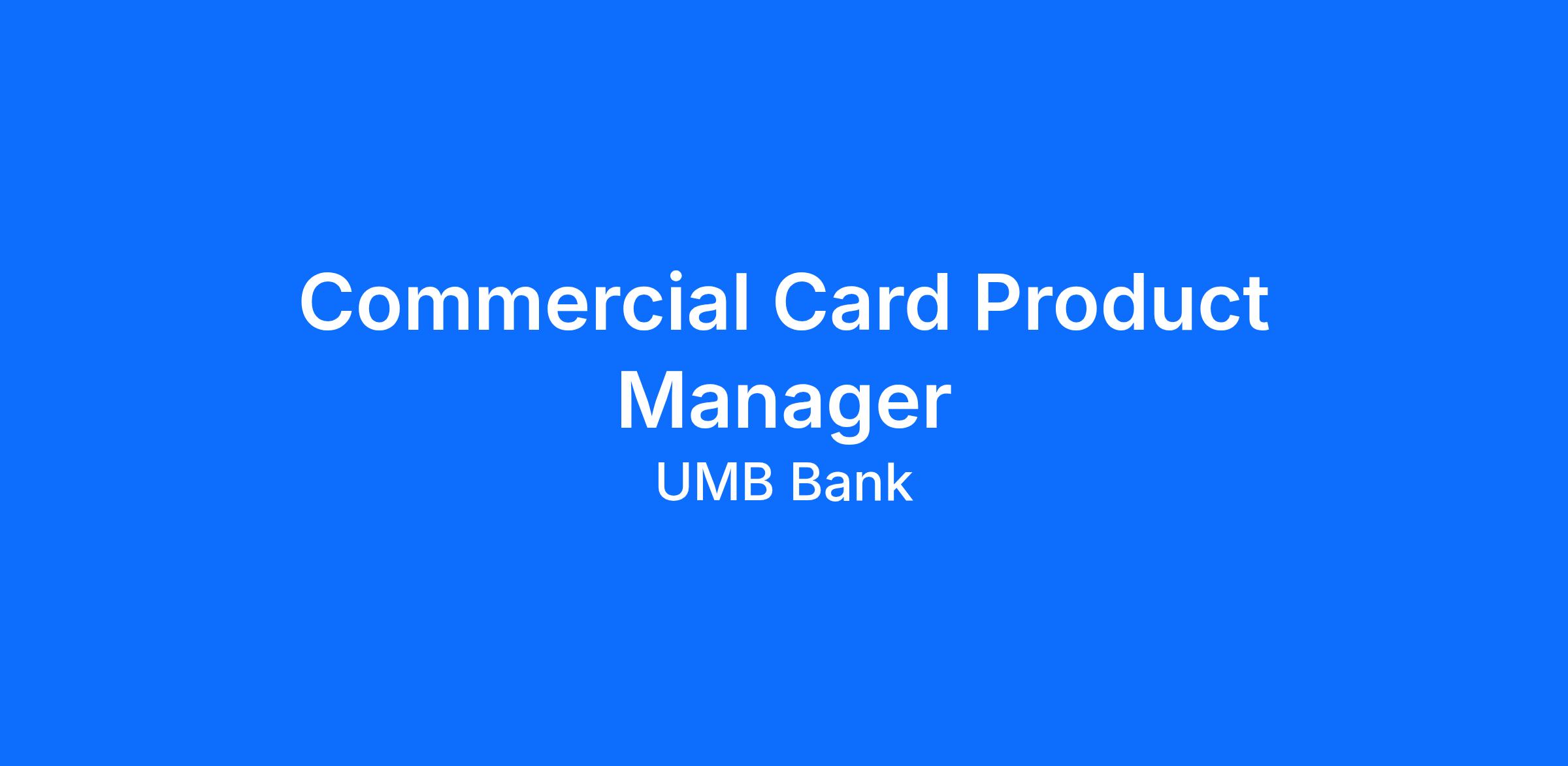 As the Commercial Card Product Manager, you will be a thought leader around the execution to expand and develop strategy to support UMB’s Commercial card solutions. You will conduct market research and competitive analysis, define product features and functionality, and among many other critical activities. This is a subset of the overall responsibilities which involves other multiple initiatives as assigned by Bank Product leadership.