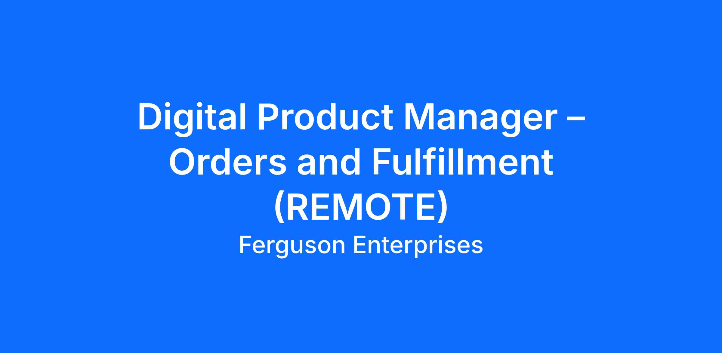 As a Digital Product Manager for Ferguson’s Orders and Fulfillment team, you will shape the strategy, vision, and roadmap for critical aspects of the customer order and post-order experience. Your primary focus areas will include order history, order details, payments, credit management, message center, and other post-order processes that drive customer satisfaction and operational efficiency. In this role, you will work at the intersection of business and technology, championing customer needs and advancing seamless self-service capabilities for our customers. You will collaborate with cross-functional teams to deliver an agile roadmap that streamlines order management, strengthens communication, and ensures an exceptional experience for all Ferguson customers throughout the entire order lifecycle.