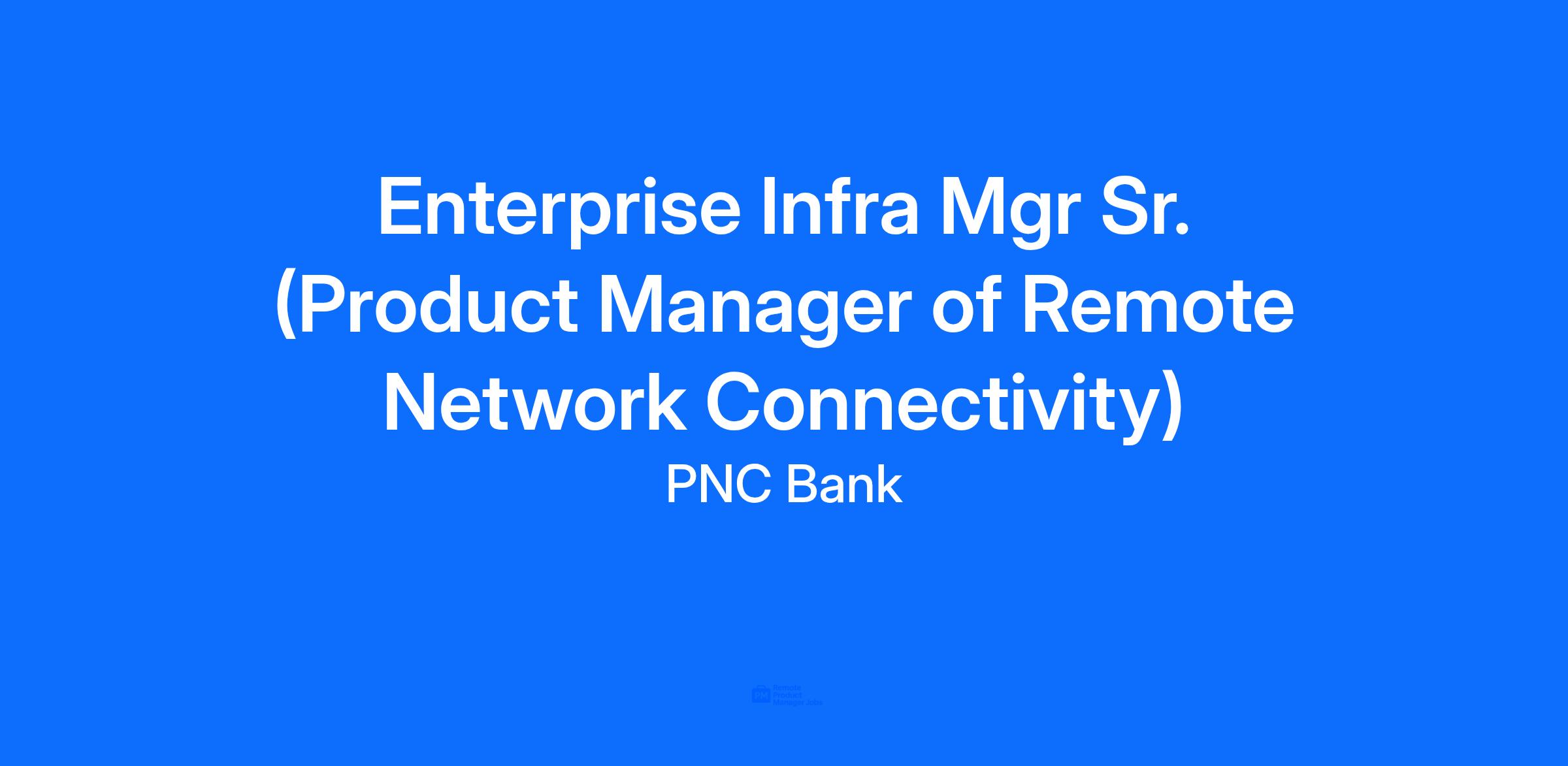 PNC is seeking a strategic and customer-focused leader to serve as the Product Manager of Remote Network Connectivity. This role centers on the development, delivery, and continuous improvement of remote connectivity solutions across business offices, branches, and distributed wired and wireless environments. The ideal candidate will drive product strategy, user experience, and cross-functional alignment to deliver scalable, secure, and cost-effective connectivity solutions. A background in network infrastructure is preferred but not required.