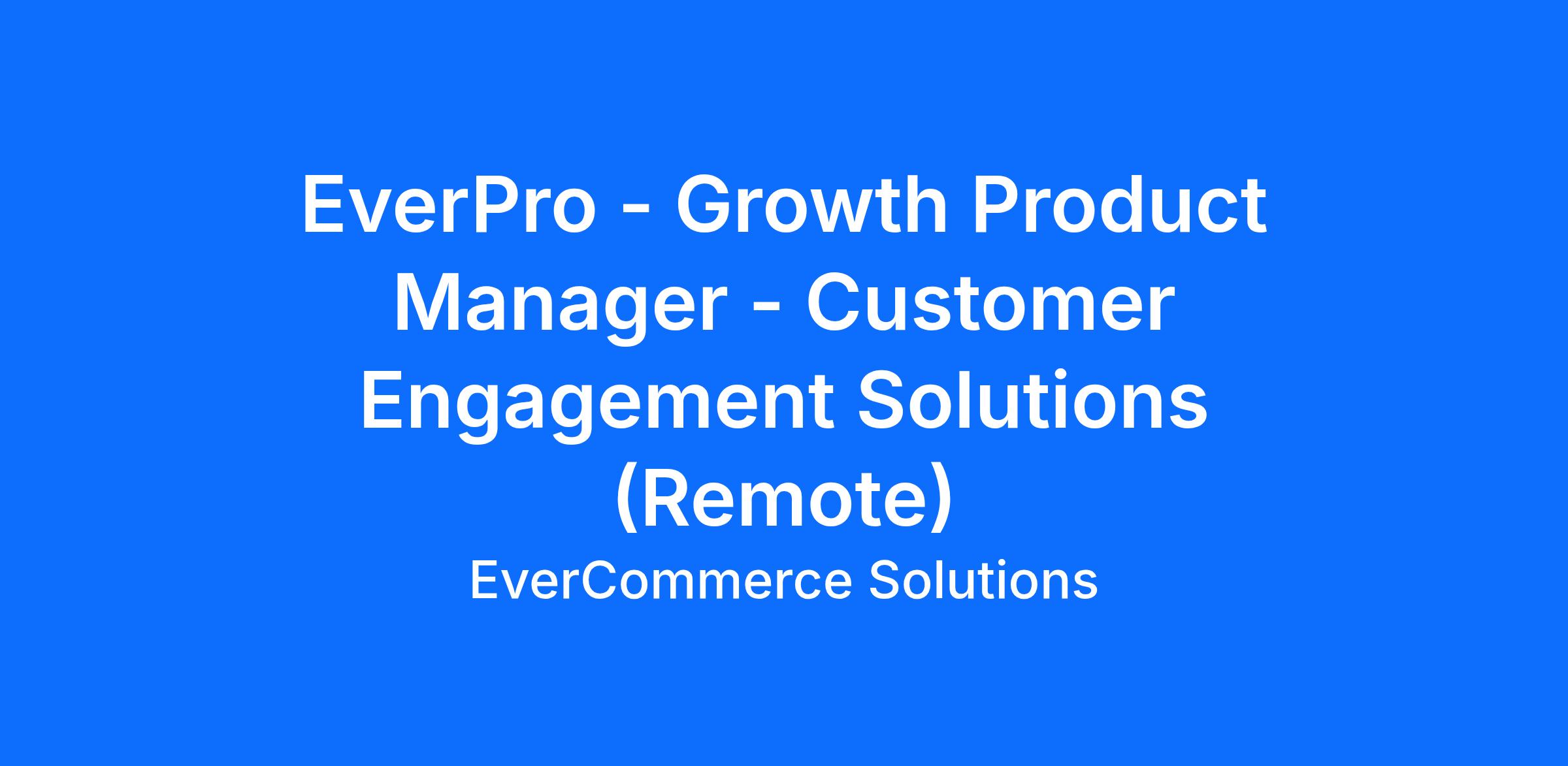 We are building an extraordinary company and looking for talented, energetic, and motivated people to join our team. Learn more about our Company, Culture and Values: https://www.evercommerce.com/about-us/careers/