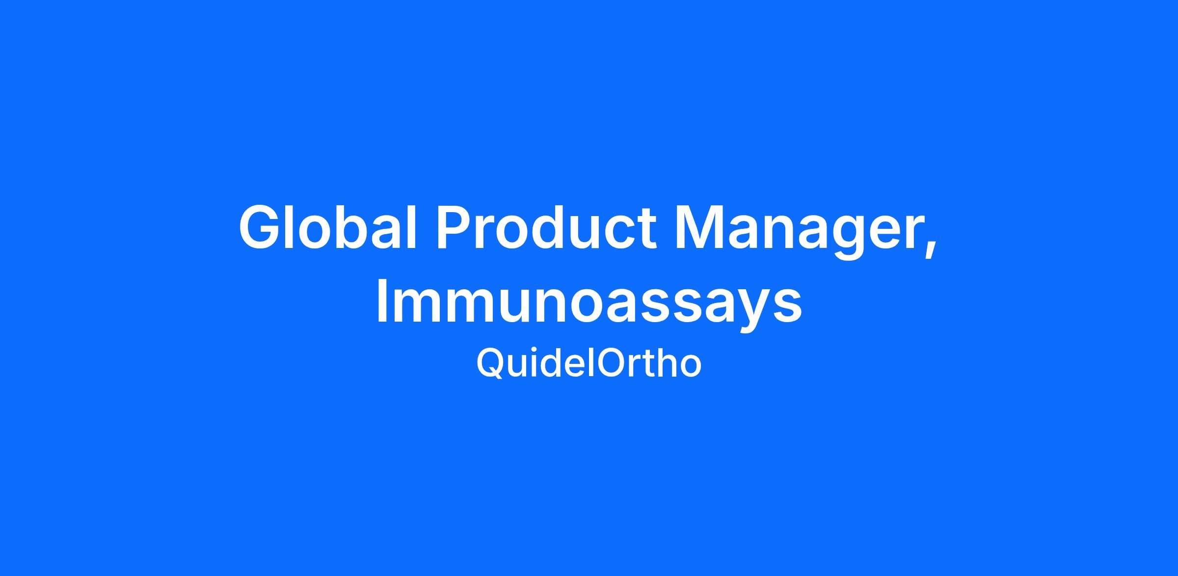 At QuidelOrtho, we’re advancing the power of diagnostics for a healthier future for all. Join our mission as our next Global Product Manager, Immunoassays. The Global Product Manager, Immunoassays will be part of the Clinical Laboratory business unit driving product portfolio strategy, overseeing commercialization activities of new/refreshed products, and lifecycle management for specific areas of the VITROS immunodiagnostics assay portfolio. This individual serves as the champion for their product portfolio, and partners cross-functionally with internal and external stakeholders to deliver products that meet customer needs and achieve business growth targets. This role has global product management responsibility for key immunodiagnostics assays in the VITROS portfolio. The desired candidate possesses strong analytical and strategic thinking, a focus on customer experience, and the ability to execute in a regulated environment. The Global Product Manager will drive needed business planning efforts including developing marketing product concepts, business cases, marketing plans, launch plans, and global marketing tools, supporting product quality escalations and mitigation efforts, addressing supply constraints, and identifying product improvement opportunities. This position is Hybrid based in Rochester, NY or Raritan, NJ .