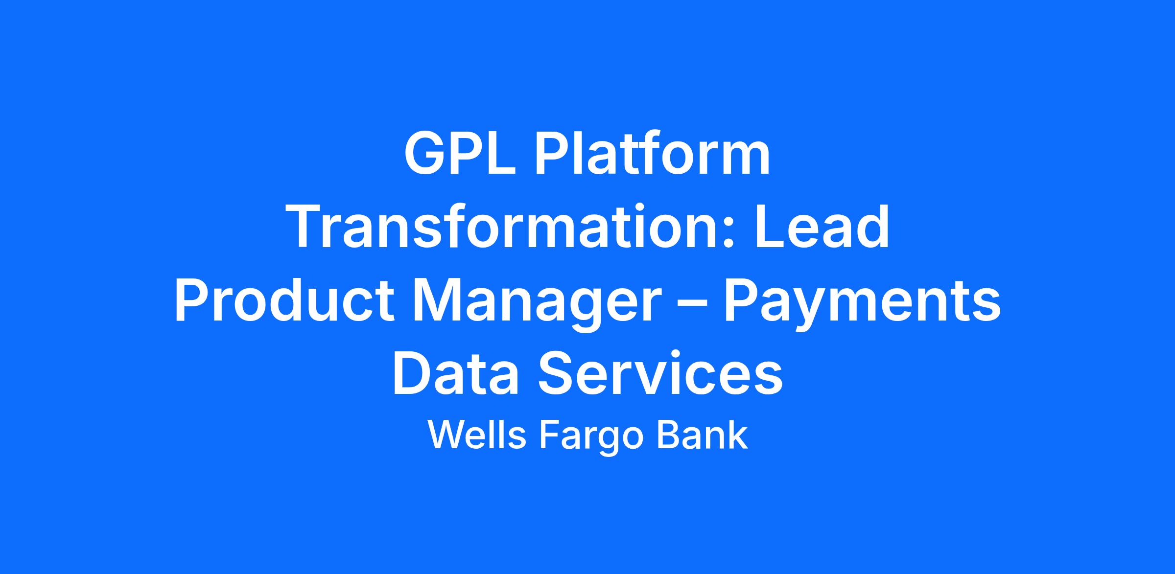 Wells Fargo is seeking a Lead Product Manager to support the Platform Transformation Data Services team, driving strategic execution and product enablement across the Global Payments & Liquidity, Product & Platform organization. This team is focused on expanding core payments products, enhancing pricing discipline for deposits and fees, and modernizing payments platforms and architecture to build robust payment ecosystems.
