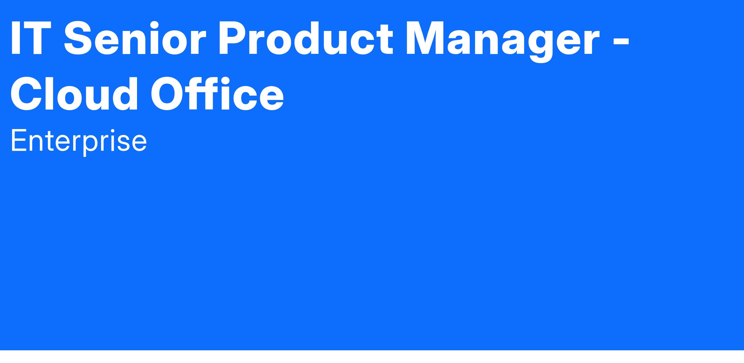 The Cloud Office team is excited to announce an opening for a Senior IT Product Manager! We are looking for an experienced Product Manager who is passionate about building products for technical customers. In this role, you will collaborate with DevOps teams to understand their needs related to infrastructure automation and other DevOps processes. You will translate their needs into feature requirements and will collaborate with teams that will design, build and roll-out the automation. The primary product is Enterprise Mobility's infrastructure-as-code automation used to build cloud environments. You will also be responsible for maturing our practices related to product management.