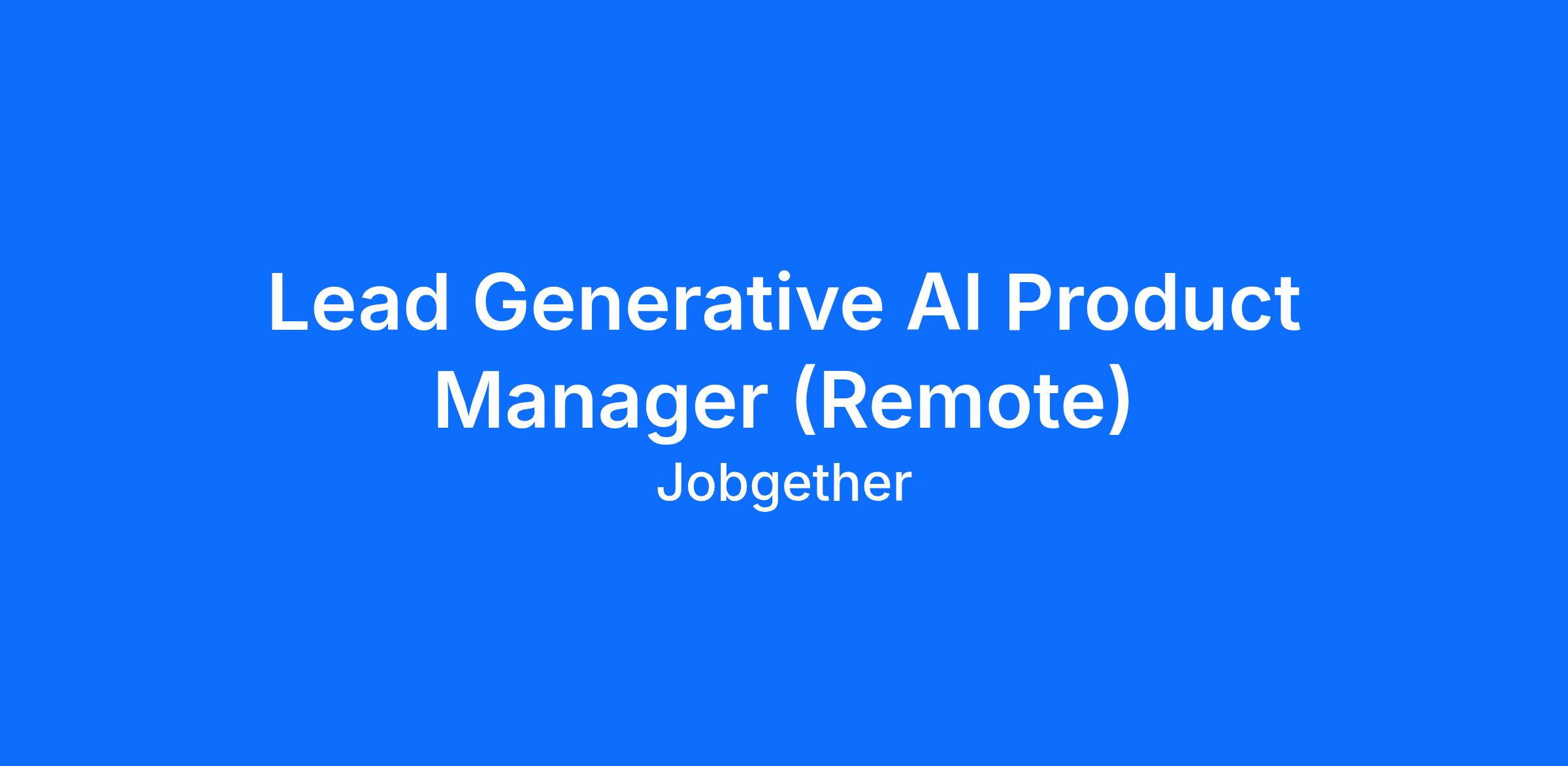 Lead Generative AI Product Manager (Remote)