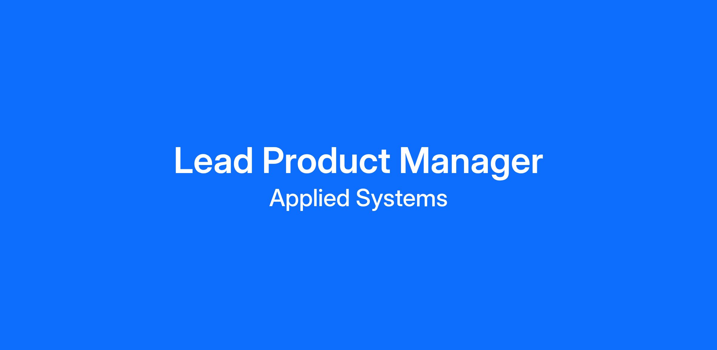 We’re searching for a Lead Product Manager to join our Product Management team in a remote or hybrid setting. This role sits at the intersection of business strategy, technology, and user experience, with a focus on building products that transform how insurance agencies and carriers work together. Applied is redefining collaboration across the insurance value chain, meeting users where they already work and enabling data to flow seamlessly across systems and partners. Our AI-powered platform helps customers make smarter decisions, operate more efficiently, and collaborate more effectively across the global insurance ecosystem.
