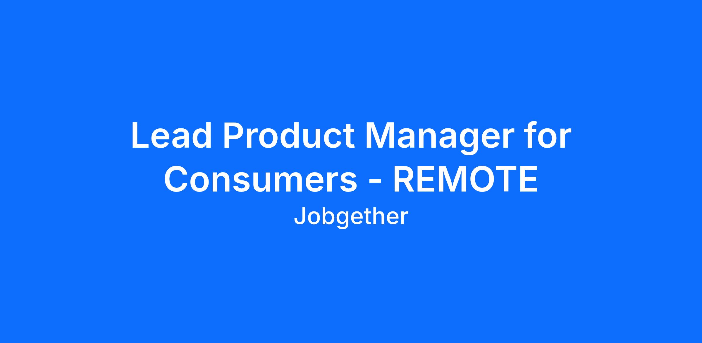 Lead Product Manager for Consumers - REMOTE