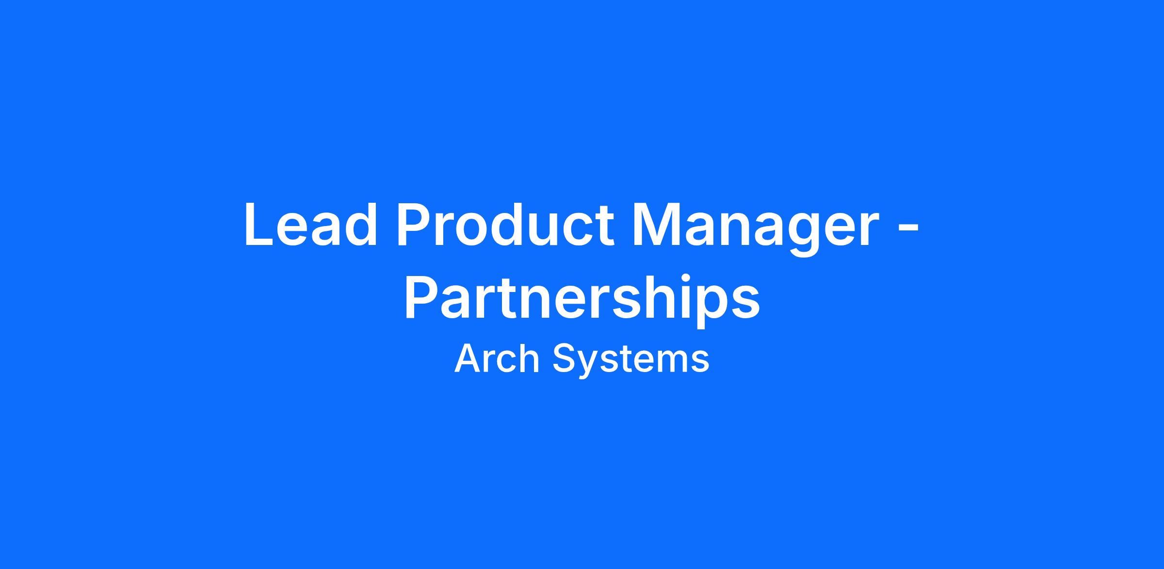 Arch Systems is seeking a Lead Product Manager for Partnerships to own the product strategy and execution that makes Arch a best-in-class partner to machine distributors and other channel partners. Your primary objective is to ensure partners see Arch as a product that prioritizes their success through high-quality integrations, partner-specific capabilities, and clear packaging that helps them differentiate their offerings and confidently discuss Arch alongside their own products.