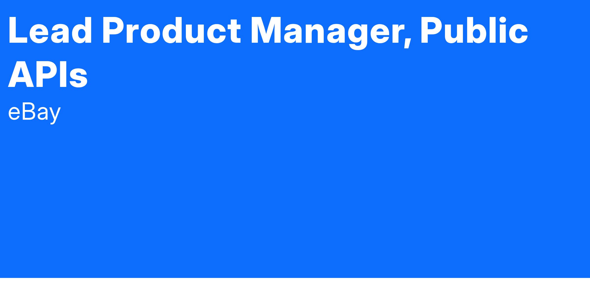 We are hiring an experienced Lead Product Manager to help specify, prioritize, and drive a variety of API product development efforts across our team. This is a high-impact leadership role that will collaborate with most organizations within eBay and important external customers via technical support, events, conferences, advisory councils, etc. You will personally lead several critically important efforts, from working with our program management and engineering team on a variety of products, to supporting key company-wide development initiatives and programs.