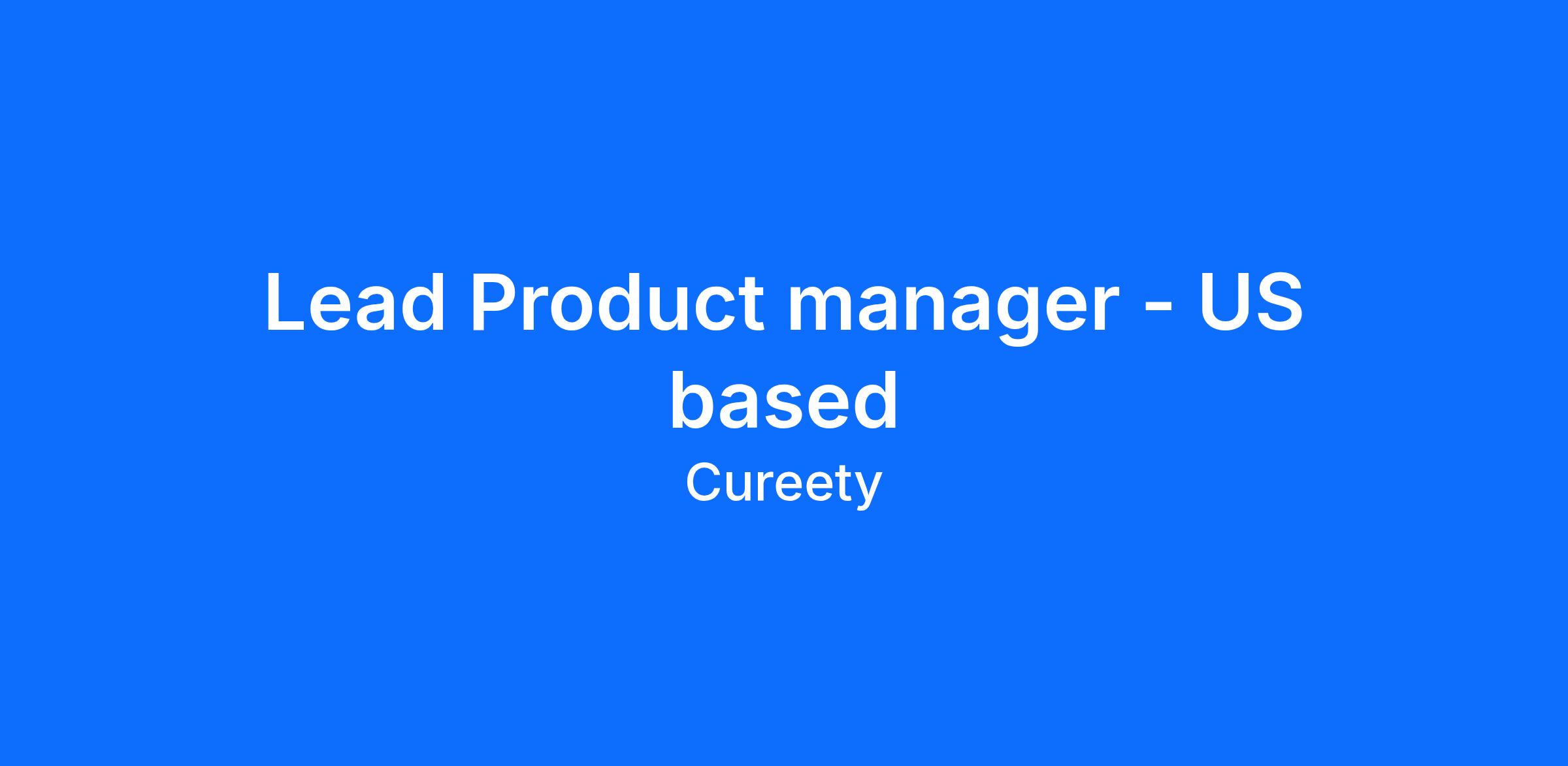 We are looking for a Lead Product Manager to help shape and scale Cureety’s product for the US healthcare market.