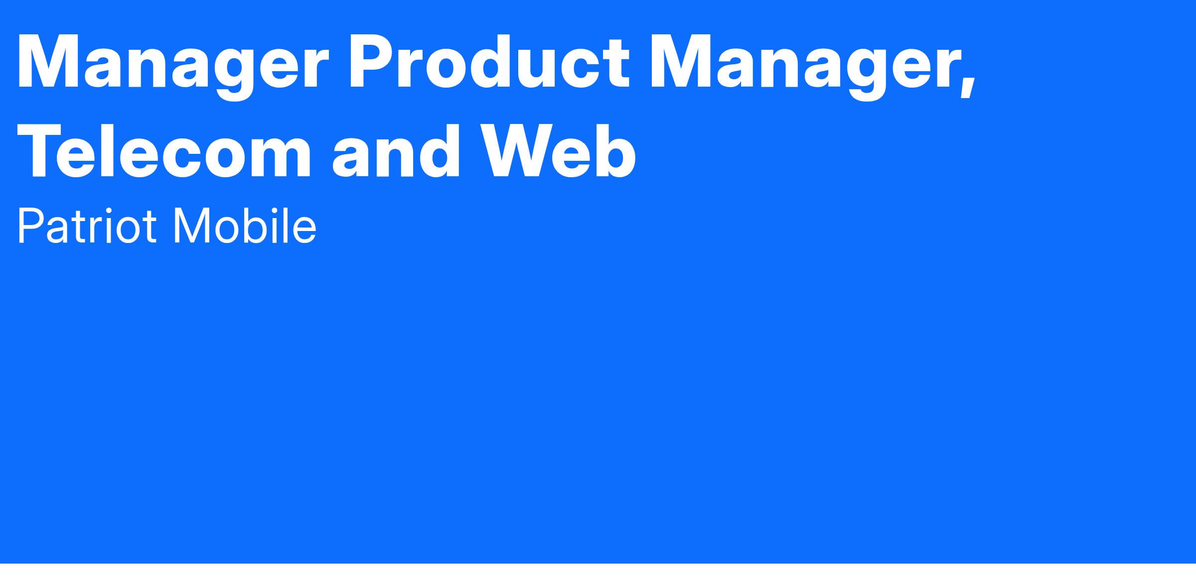 The Manager Product Manager will report to the Vice President of Product Development and Fulfillment. The successful candidate will be responsible for overseeing a suite of telecom products, some of which are digital. The digital products include the launch of a mobile application and key website functionality including account management. For all products, including telecom and digital, the PM will be responsible for the full lifecycle management of products they own. In this role, the successful candidate will be responsible for product lifecycle, from ideation and strategy to execution and optimization. They will work closely with cross-functional teams, including engineering, design, marketing, and customer support, to deliver seamless and innovative digital experiences that meet our users' needs and drive business growth. As a Manager in the Product team, the successful candidate must be able to lead and mentor others in Product Management best practice and should be an example for others in how to conduct both Product Management and good business in general.