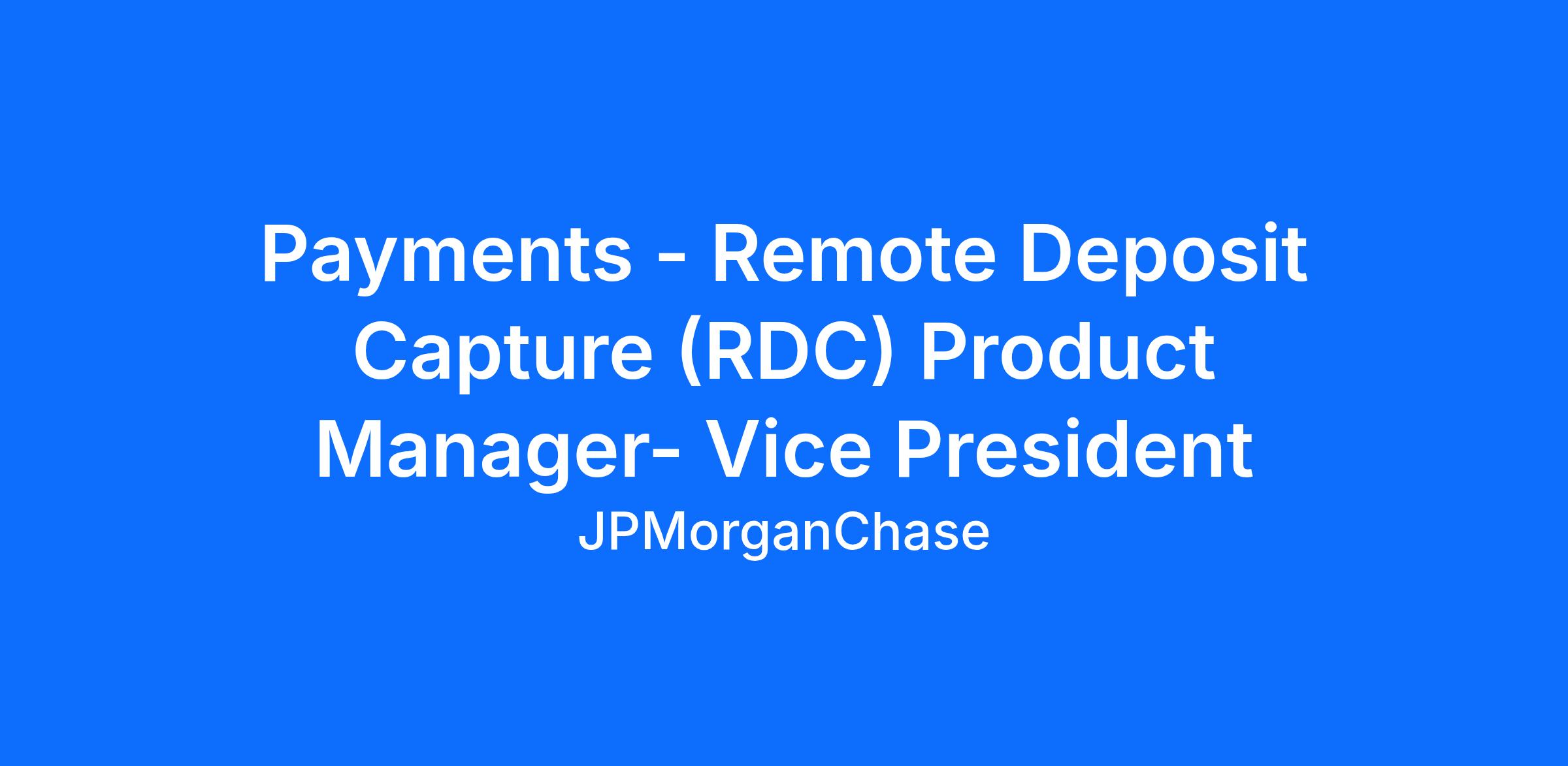 - Establish oneself as the subject‑matter expert in Remote Deposit Capture, translating market dynamics and client needs into actionable strategy