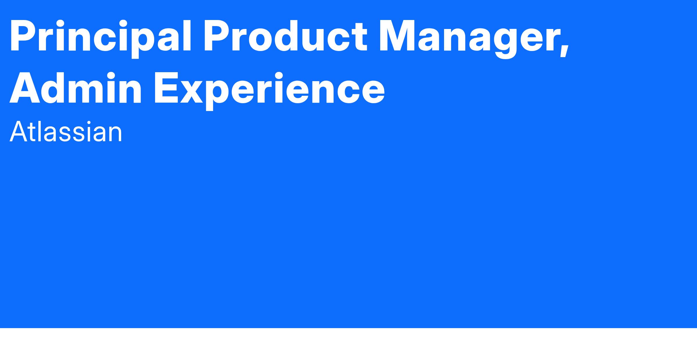 In this role, you will lead one or more pillars of the Atlassian Admin app, drive the product strategy for the pillar(s), and steer and orchestrate multiple programs of work within your purview. You will have a principal-level role on the Admin Experience team as an individual contributor with substantial input on both strategy and execution.