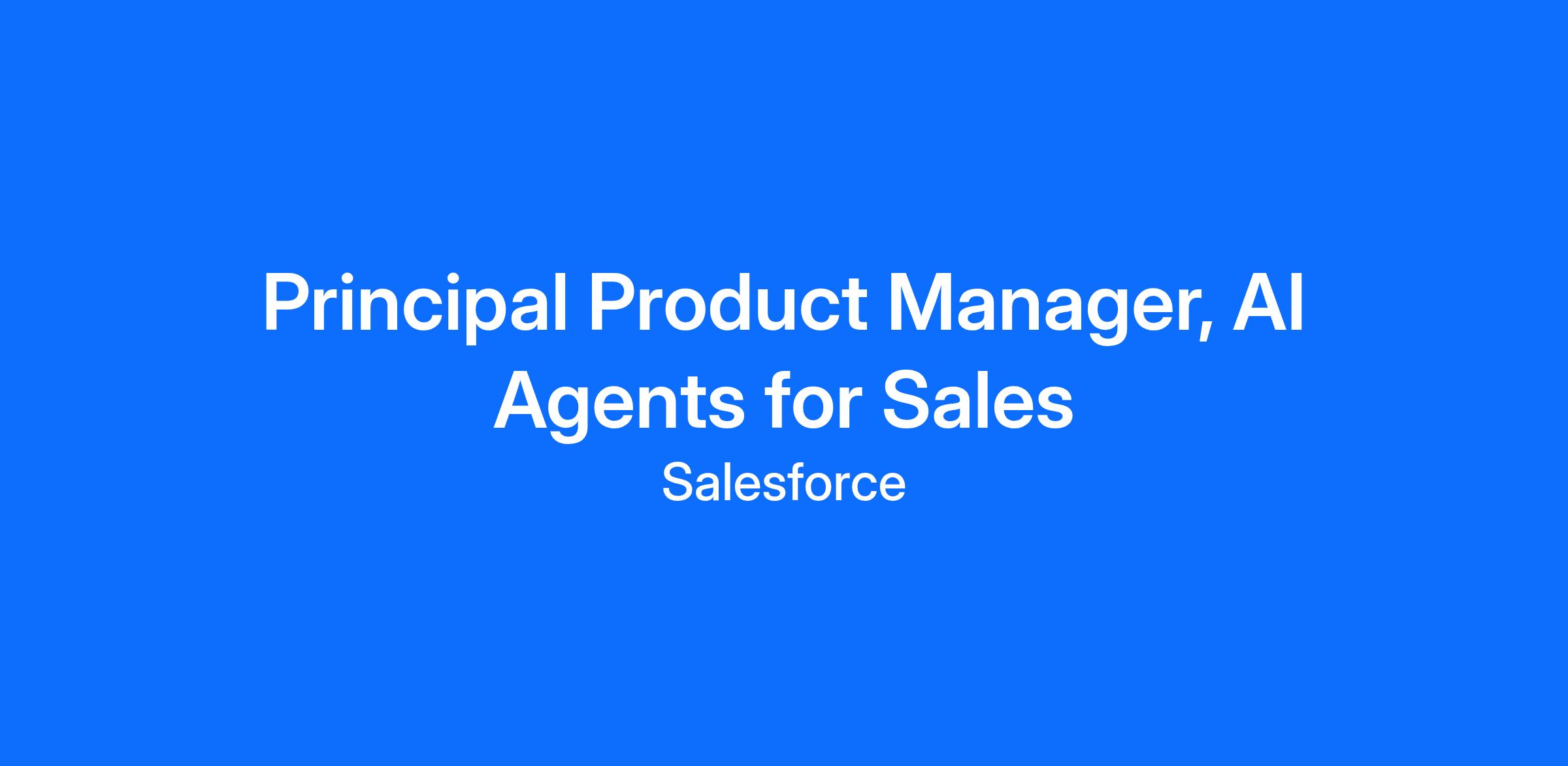 We’re looking for a strategic and execution-driven Principal Product Manager with deep Salesforce expertise (Sales Cloud, Agentforce Platform, AI) to lead the agentic vision and delivery of intelligent AI agents that power our world-class Sales organization.
