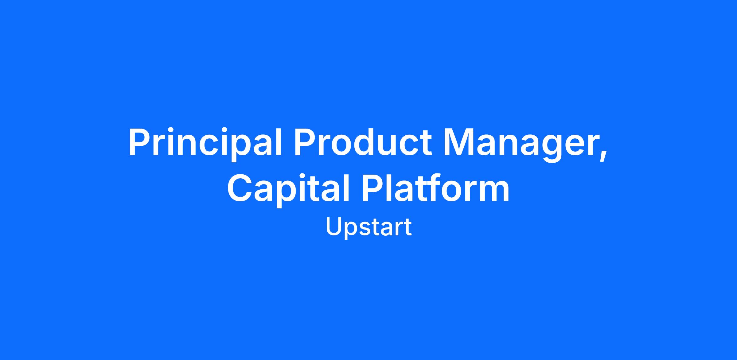 As a Principal Product Manager, you will be a senior, hands-on individual contributor owning strategy and execution for one of Upstart’s most complex and high-impact capital platform problem spaces.