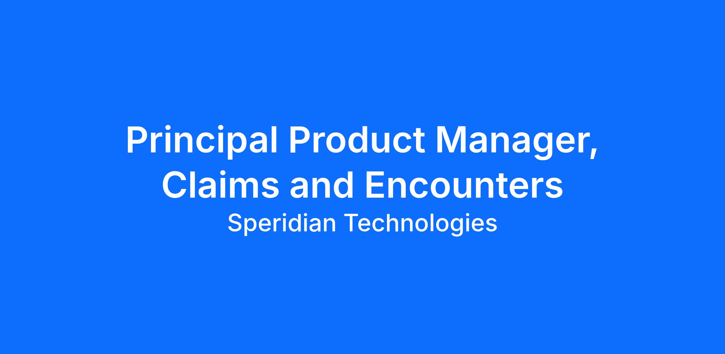 Job Title: Principal Product Manager Claims and Encounters