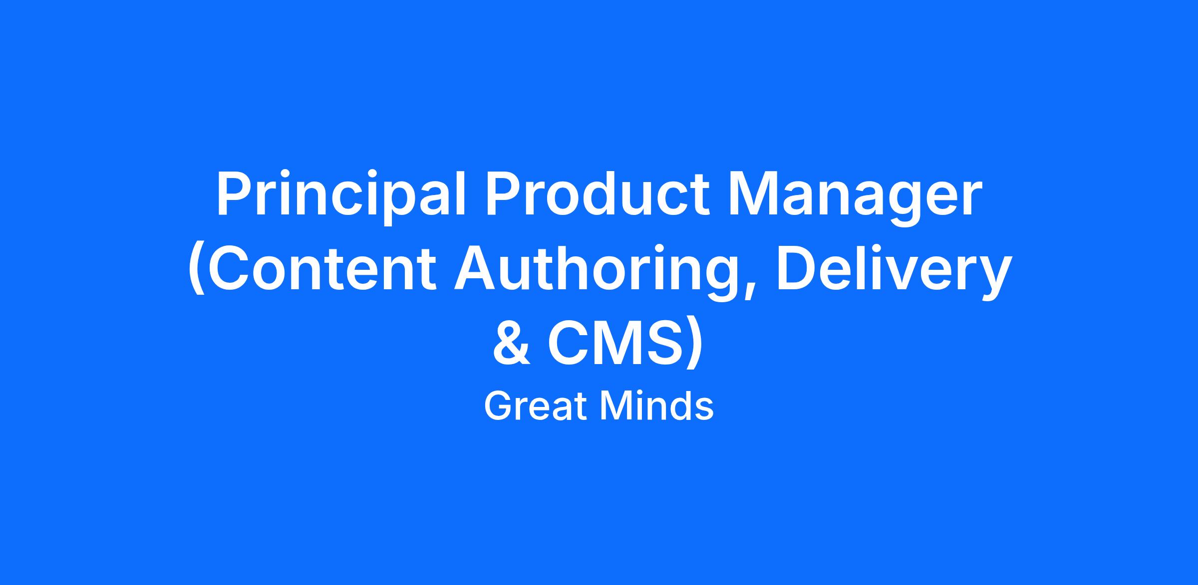 Reporting to the Director, Digital Product Management, the Principal Product Manager (Content Authoring, Delivery & CMS) will lead discovery and execution for our content authoring tools, end user delivery experiences, and content management system (CMS). This role will be critical to how curriculum and assessment content is created, managed, and experienced by teachers, students, administrators, and internal teams. This is a top-level individual contributor role with broad ownership and influence. The position will work with product design, engineering, curriculum, and assessment teams to ensure Great Minds’ authoring and delivery platforms are coherent, scalable, and deeply supportive of high-quality K–12 instructional and assessment experiences. The role will partner closely with Product Design, Engineering, and other teams in and outside the Digital department.