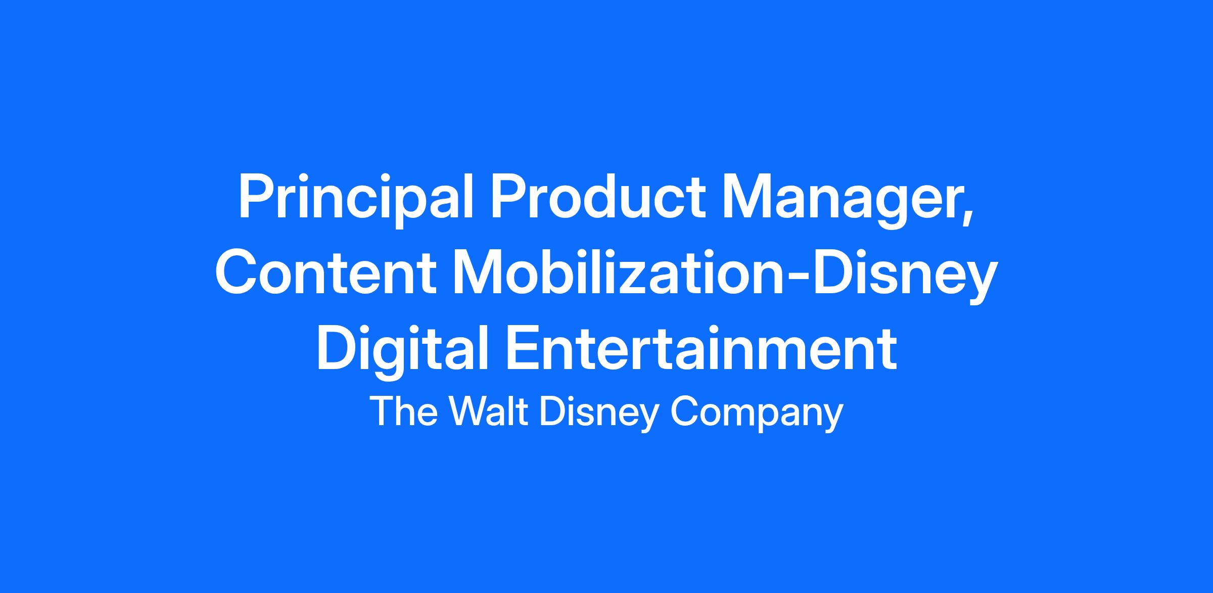 Principal Product Manager, Content Mobilization-Disney Digital EntertainmentReq ID: