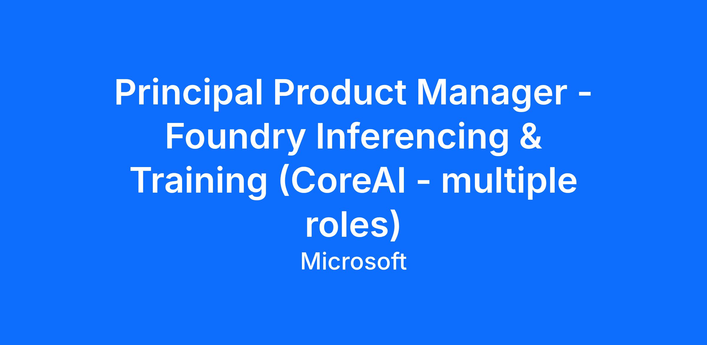 Principal Product Manager - Foundry Inferencing & Training (CoreAI - multiple roles)