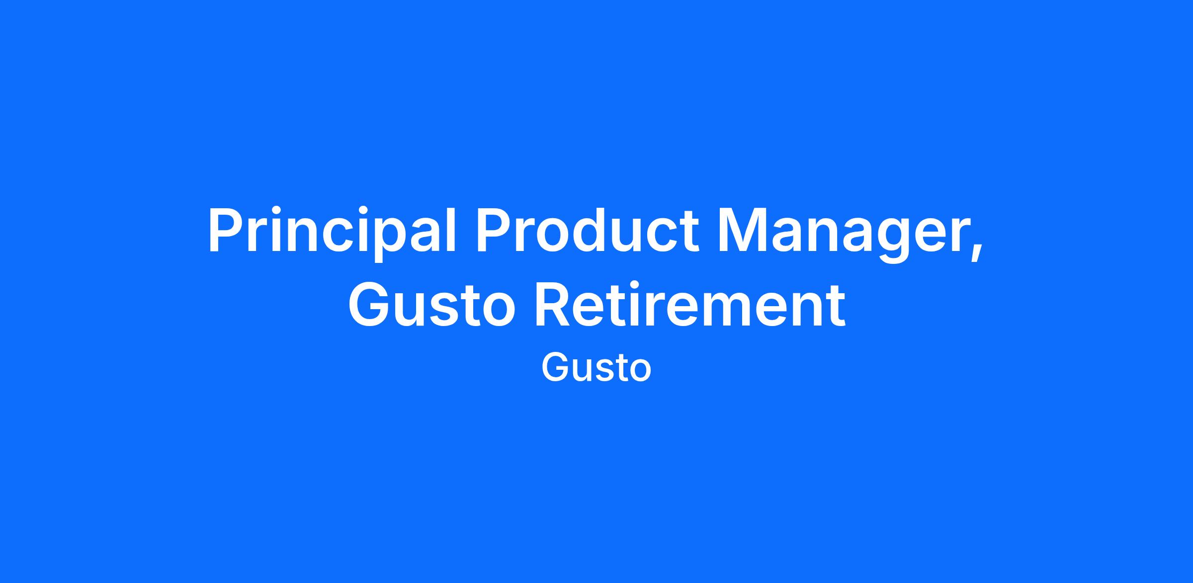 Gusto Retirement helps small businesses offer cost-effective, easy-to-use retirement solutions so more people can build toward a secure retirement. We’re looking for a Principal Product Manager to lead growth initiatives across our Retirement product, driving adoption and engagement end-to-end. You’ll set strategy and priorities, run experiments, and ship improvements from ideation through execution to accelerate growth across key funnels (employer setup, employee enrollment, and ongoing contributions). You’ll also explore new product opportunities/JTBD that expand how we serve SMBs and unlock new avenues for growth