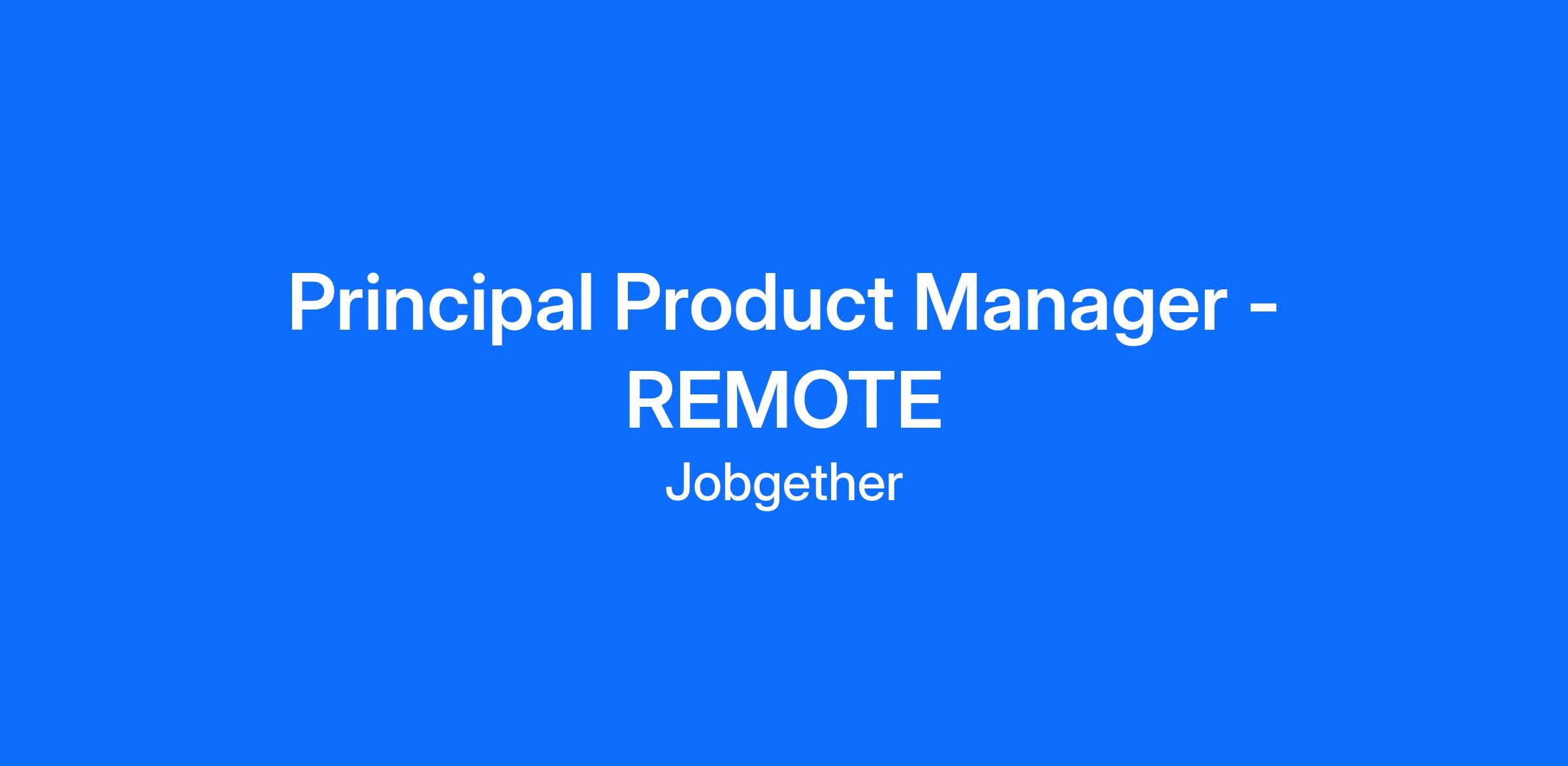 Principal Product Manager - REMOTE
