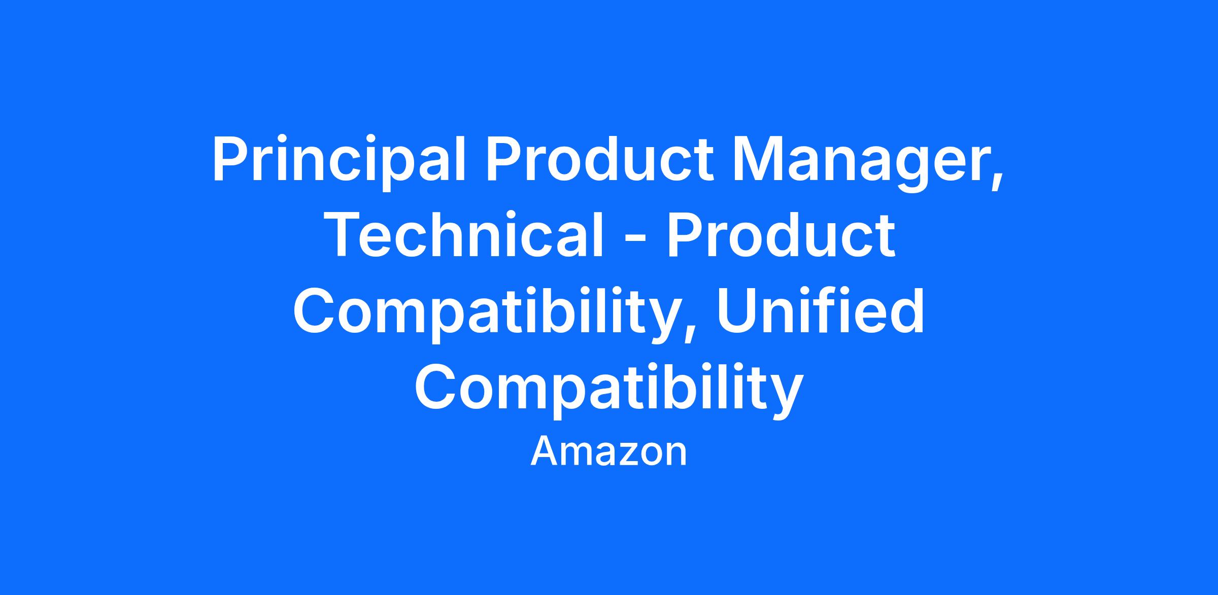 We're seeking a Principal Product Manager, Technical to lead Amazon's product compatibility data strategy. This role will shape how millions of customers discover and purchase compatible products across Amazon's global marketplace. You'll own the end-to-end data generation lifecycle that powers compatibility matching across categories like electronics, home appliances, and accessories, helping customers confidently find products that work together.