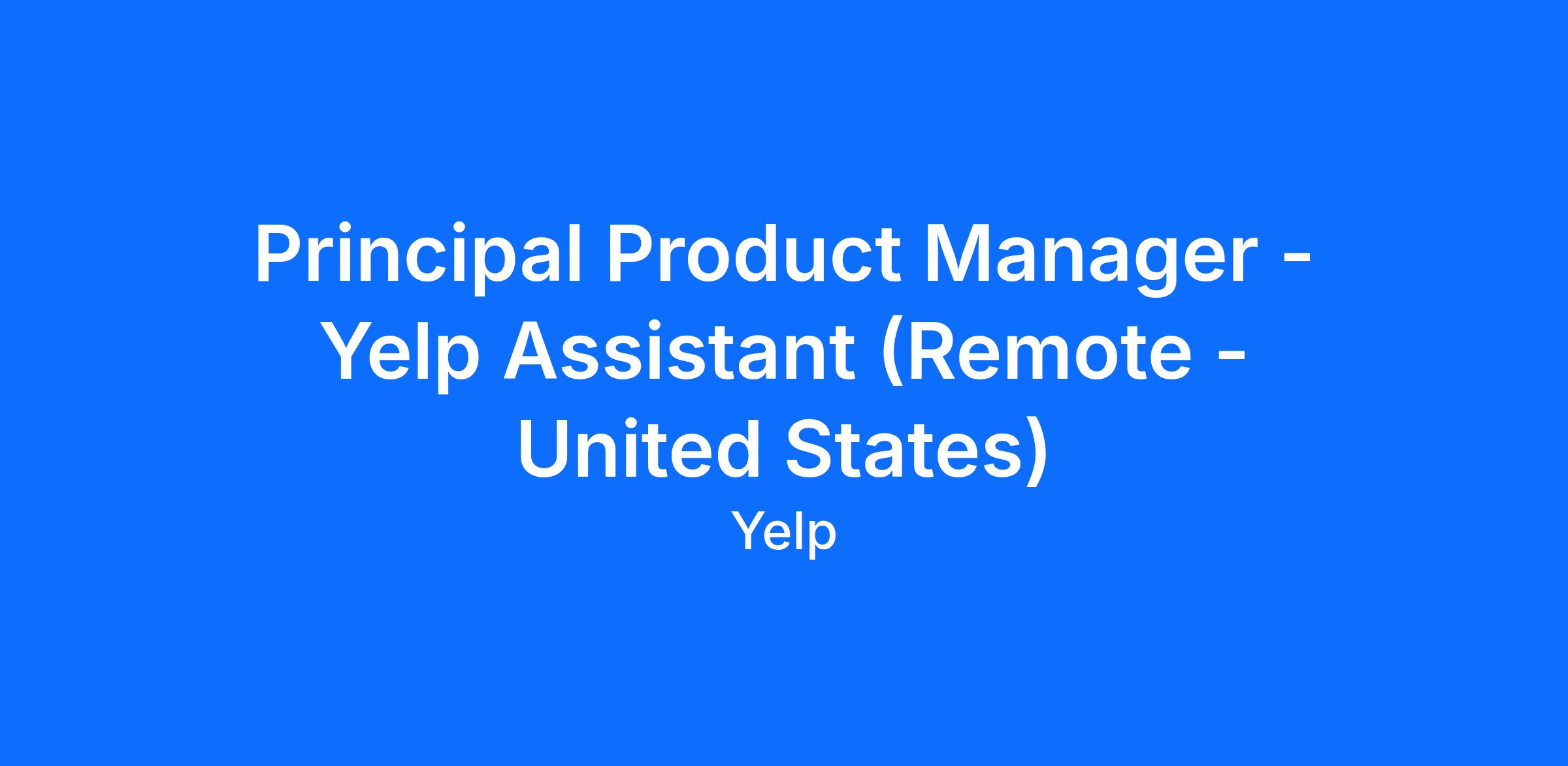 Yelp is on a mission to build the most trusted local AI assistant—a powerful, conversational experience that enables millions of people to discover, compare, and connect with local businesses in ways never before possible. Yelp Assistant helps customers ask complex, nuanced questions and get reliable recommendations or take action, all in a seamless, intelligent conversation. We're at a pivotal moment where the boundaries between chat, search, social media and agentic AI are being redefined, and we're looking for a Principal Product Manager to lead us into this next chapter.