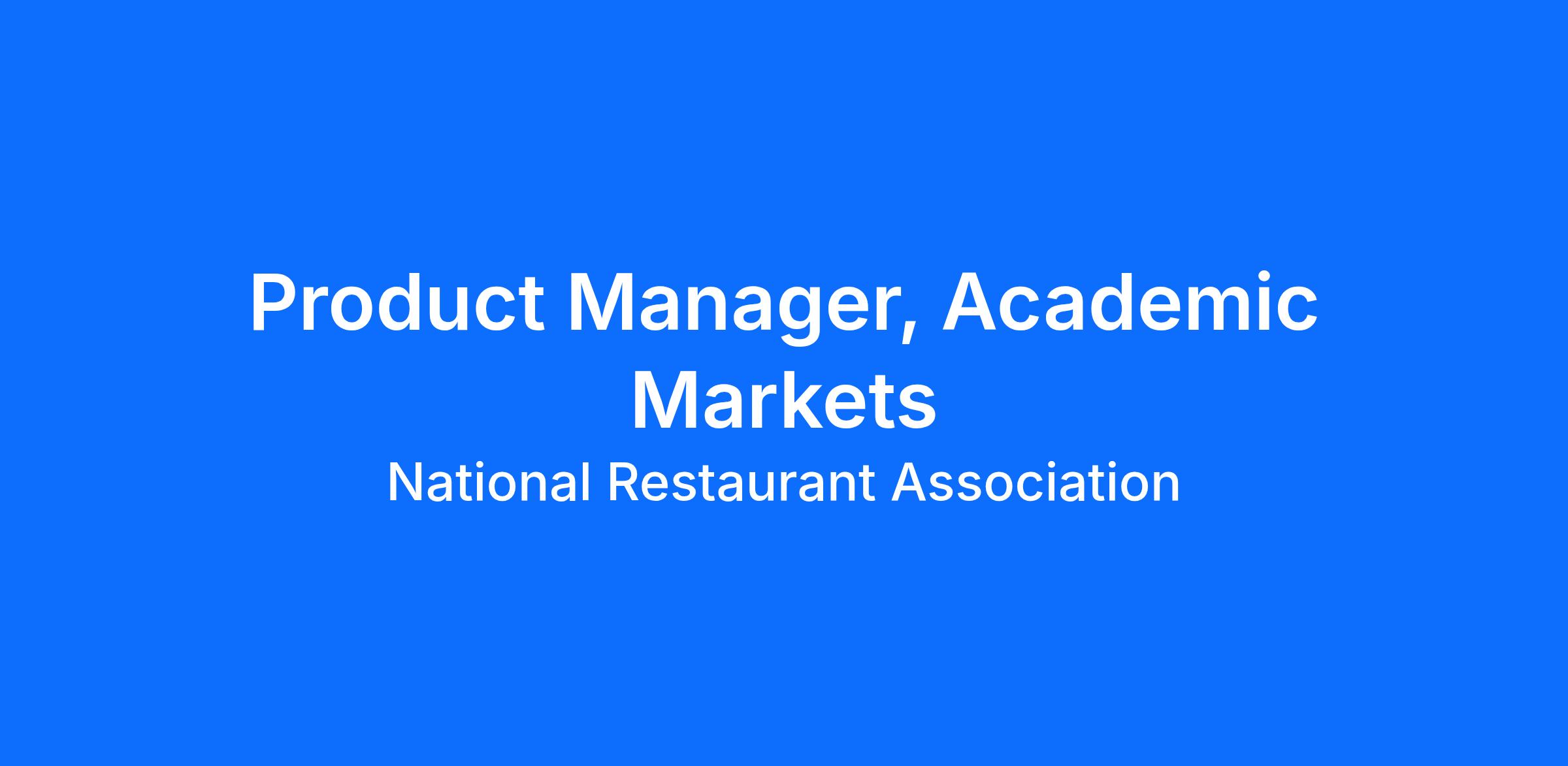As an integral member of our Product Management team, the Product Manager, Academic Markets, will develop the strategic plan for the National Restaurant Association’s restaurant and hospitality-focused academic markets portfolio (secondary and post-secondary), focusing on both position-specific and topic-driven training products. Serving as an internal advocate and leader for the portfolio, you will be responsible for managing the day-to-day business of the products, evaluating current performance, conducting competitive analysis, and identifying customer-focused solutions to meet market needs.