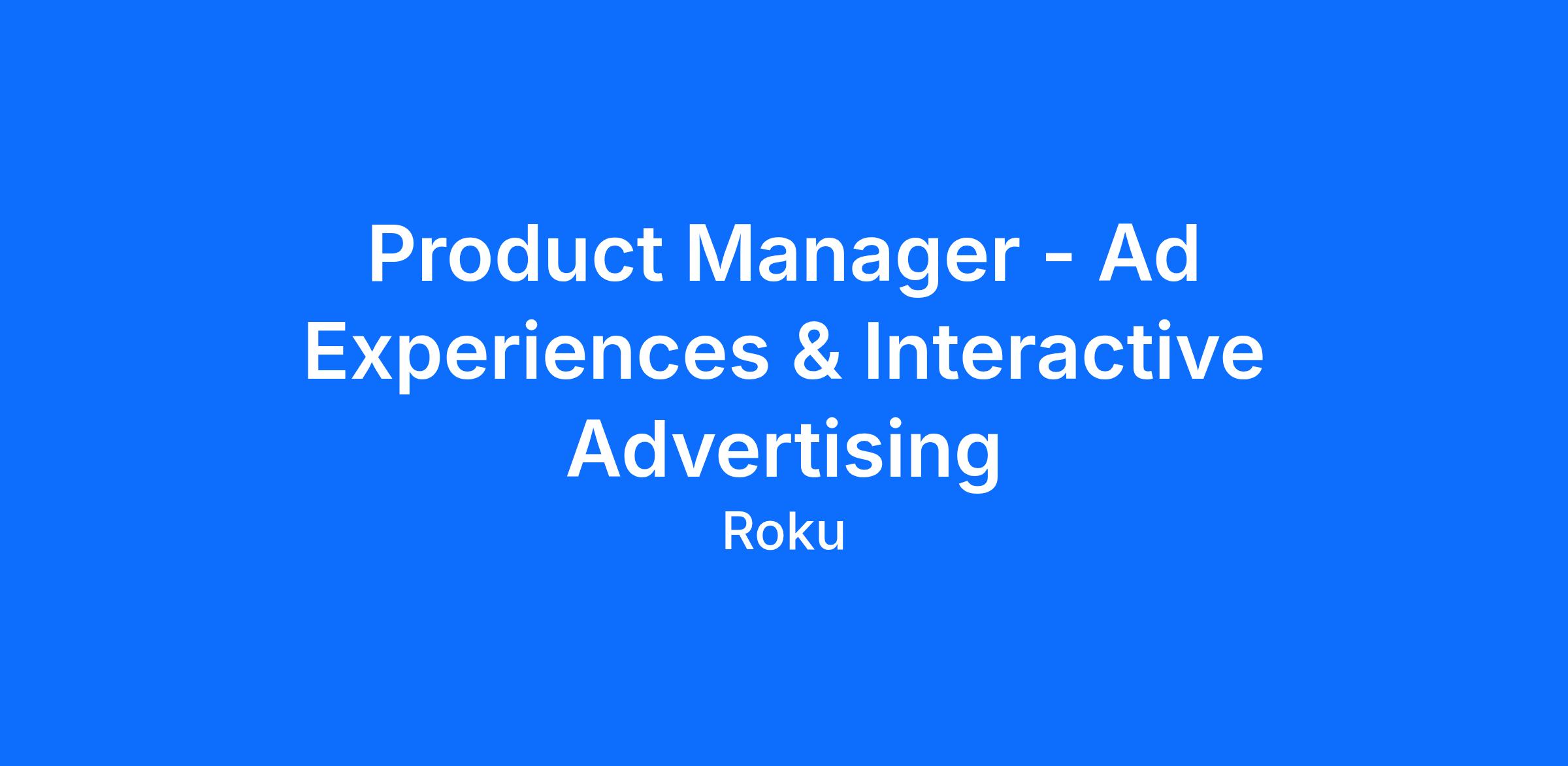 We're looking for a Senior Product Manager to lead the development of next-generation Ad Experiences and Interactive Advertising solutions that help marketers and advertisers drive visually appealing, high-impact sponsorships on the platform. The ideal candidate will pair a global mindset with locally relevant execution, serving as a gritty problem solver and self-starter who can drive programs with product and commercial teams at Roku and with external strategic partner organizations.