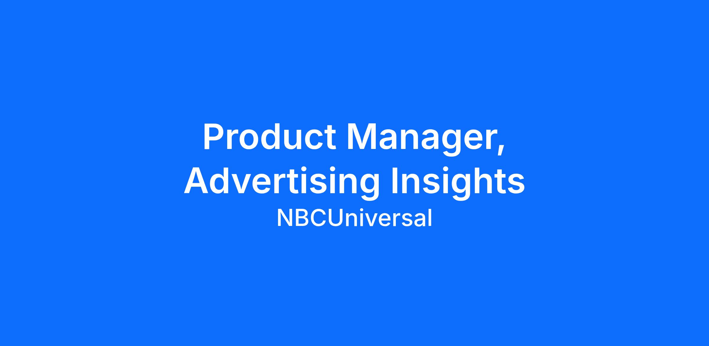 The Advanced Products and Capabilities team within Advertising Platforms & Operations is focuses on delivering the data and technology solutions that underpin our audience and activation products. We are seeking a Product Manager to support and scale NBCU’s insights and forecasting products. The ideal candidate is a highly collaborative product manager who is passionate about digital media and data-driven decision-making and who brings strong product execution skills, stakeholder communication abilities, technical fluency, and a willingness to take ownership where needed.
