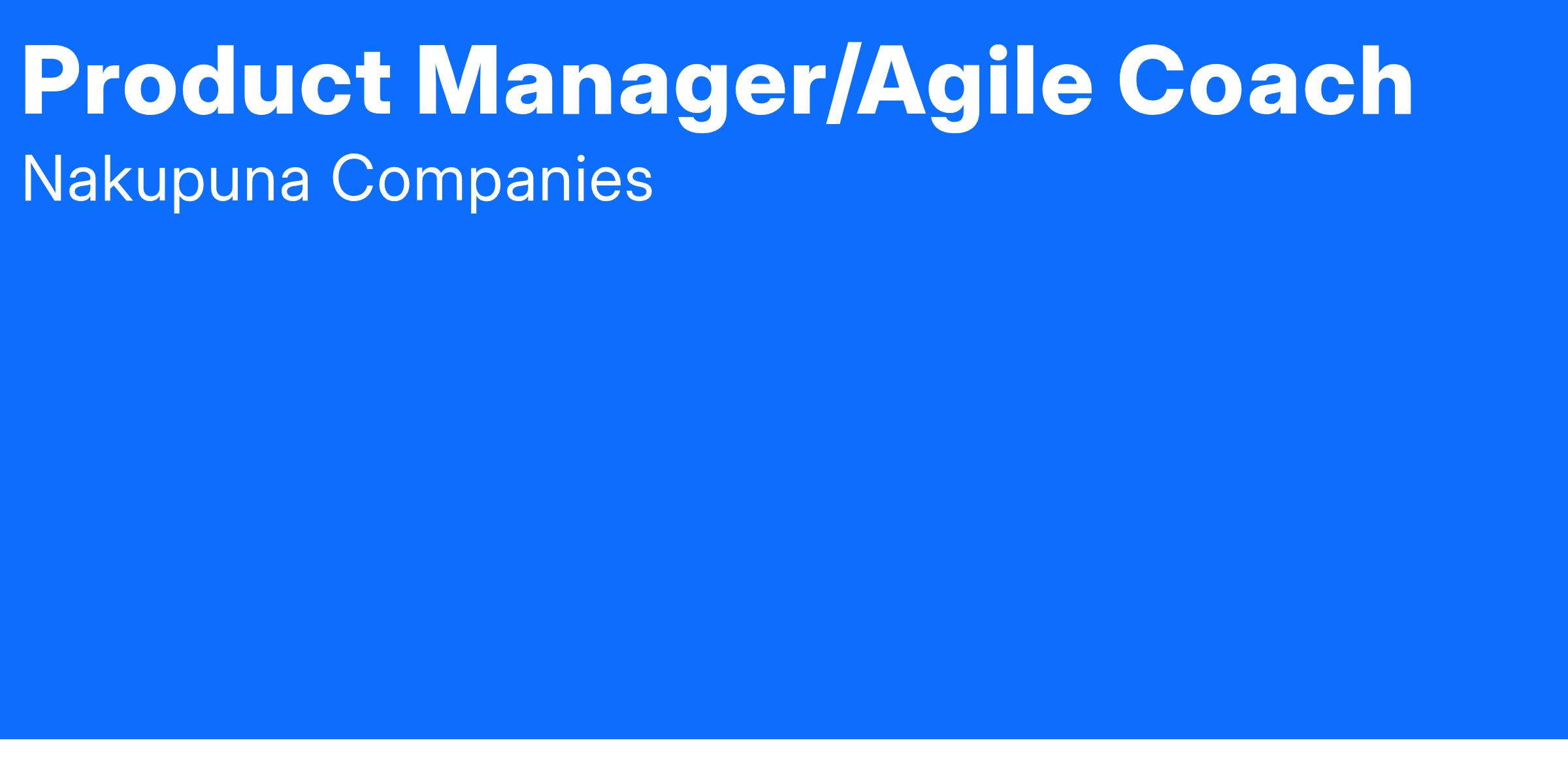 Nakupuna Consulting is seeking a Product Manager/Agile Coach to provide leadership, management, and direction for the establishment of a Lean Center of Excellence. This role requires supervising of contractor personnel, and communicating policies, purposes, and goals of our Naval Information Warfare Center (NIWC) & Navy clients.
