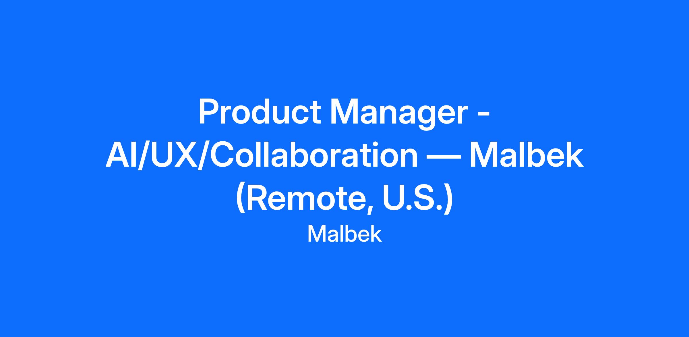 Product Manager - AI/UX/Collaboration — Malbek (Remote, U.S.)