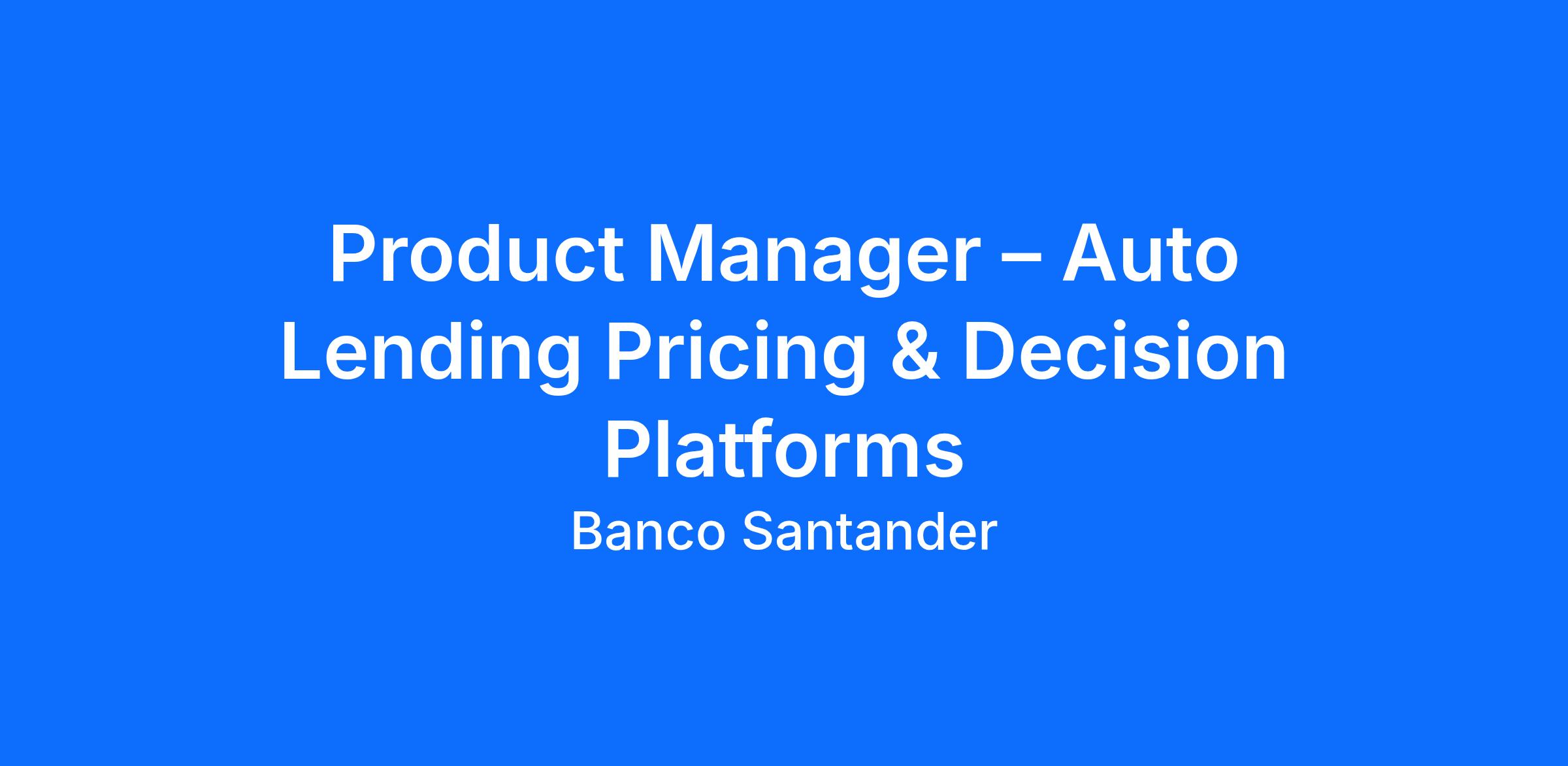 The Sr. Associate, Product Management leads product development processes for Auto Finance pricing, decisioning, and originations products, supporting both consumer and commercial lending. The role partners closely with cross-functional teams to deliver scalable, compliant, and profitable solutions that support credit risk management, pricing strategy, and funding objectives.