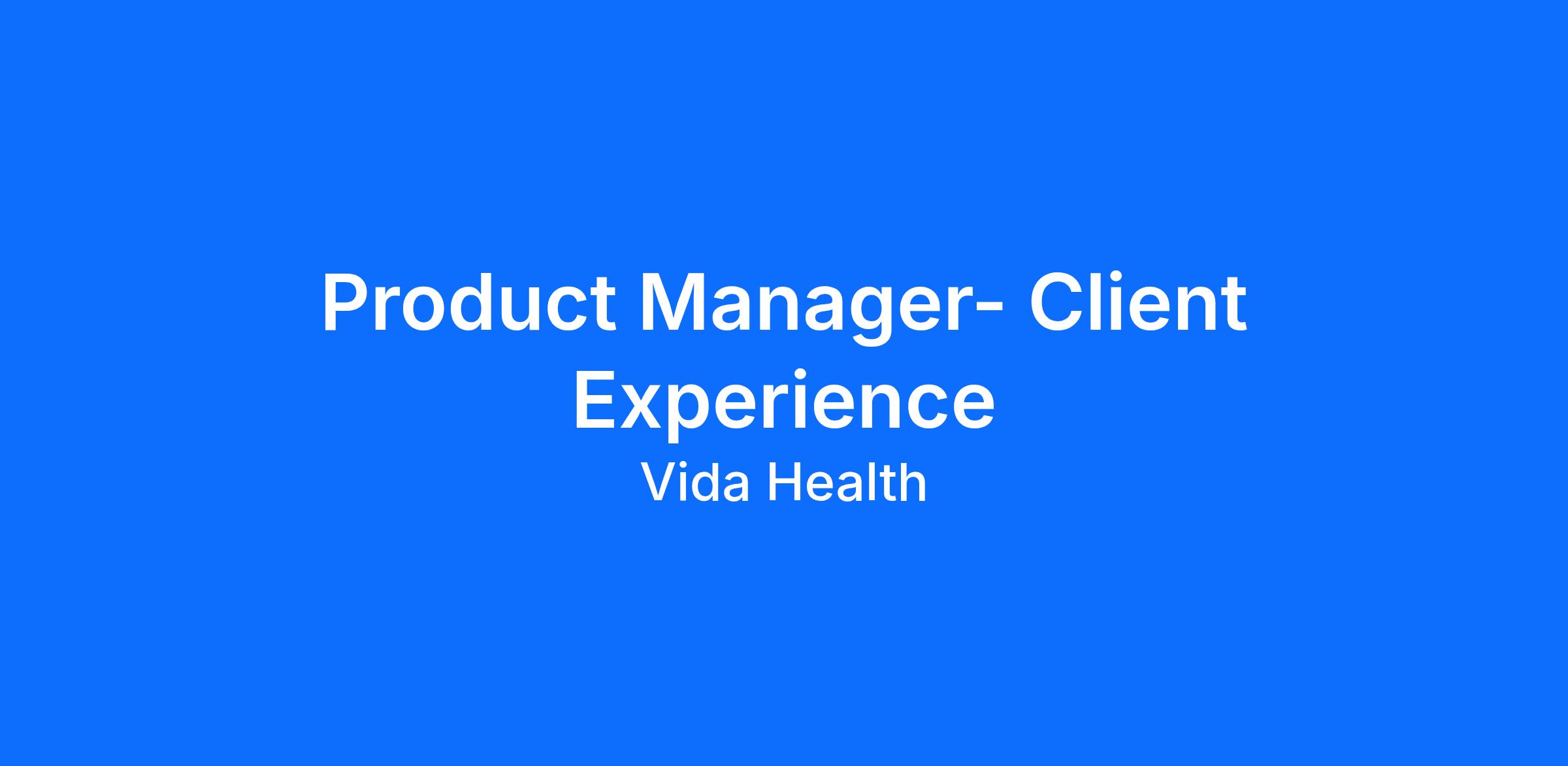 Vida Health is seeking a Product Manager, Client Experience who writes SQL to debug a broken rule, reaches for Claude Code before they reach for a Confluence doc and finds genuine satisfaction in the fact that a clean configuration schema is what makes great member experiences possible.
