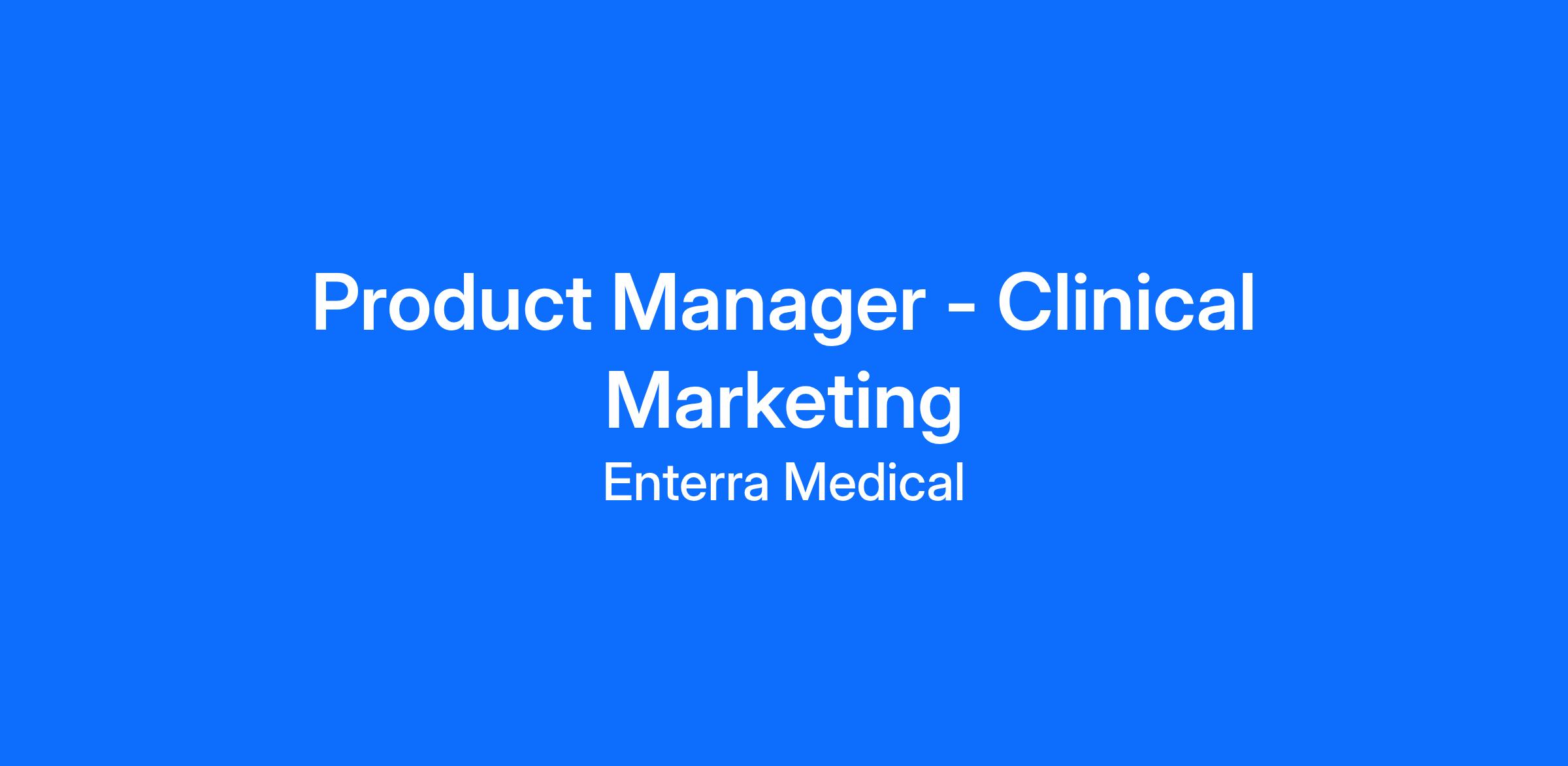 We are seeking a Product Manager, Clinical Marketing, who will play a central role at the intersection of marketing, medical education, and clinical research. This position helps shape how Enterra Medical’s clinical evidence is communicated to physicians, key opinion leaders, and the commercial organization. This role leads the development of messaging, marketing materials, and training resources that reflect Enterra Medical’s clinical outcomes and supporting evidence. These materials are used for sales enablement, KOL engagement and advisory board initiatives, medical education programming, and activities that increase awareness and recruitment for ongoing clinical studies. The Product Manager partners closely with Marketing, Medical Education, Medical Affairs, and Commercial teams to ensure clinical evidence is communicated clearly, consistently, and appropriately across the organization.
