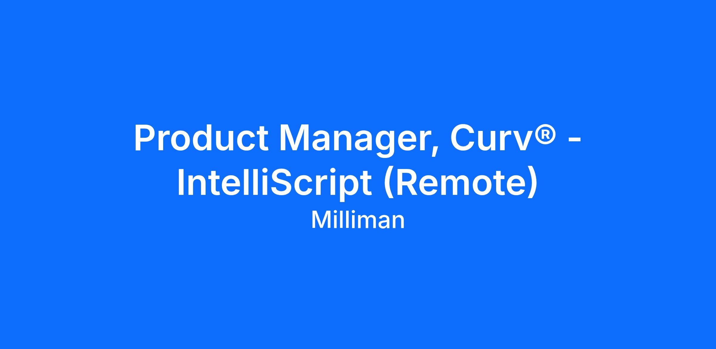 The Product Manager will have an integral role in driving the strategy for IntelliScript’s Curv® product portfolio. This customer-facing role partners with sales, marketing and relationship management to discover market needs and inform the product roadmap. As a Product Manager collaborating with an Agile team of Software Developers, Quality Assurance Engineers, and System Architects, you will help bring the Curv® product vision to life through the continued growth and enhancement of our core products that drive value for our clients.