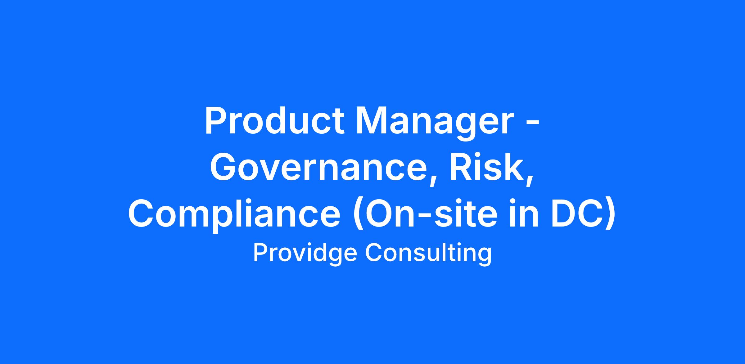 Job Title: Product Manager - Governance, Risk, Compliance (On-site in DC)