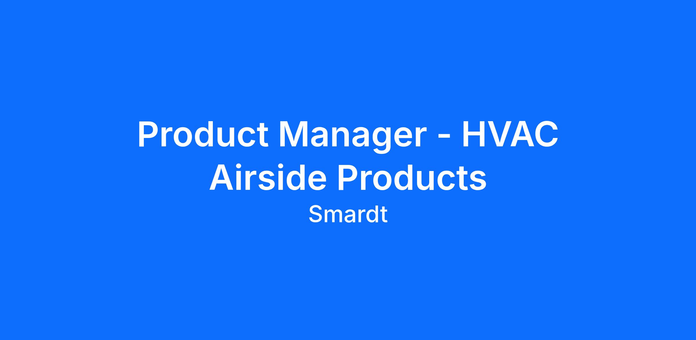 The Product Manager – HVAC Airside Products is responsible for SMARDT is seeking a seasoned Product Manager to lead its HVAC airside and air-handling product portfolio across The Americas. This role carries responsibility to the global ownership of assigned product lines, including strategy, roadmap, pricing, positioning, and lifecycle performance.