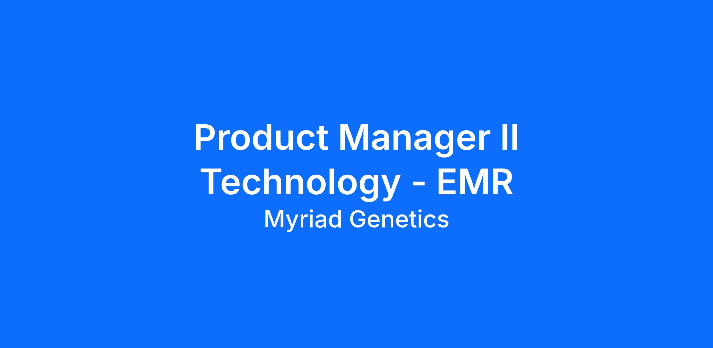 The Product Manager II Technology role will help lead the expansion and adoption of our genetic tests through increasing and enhancing our EMR integrations with large health systems and EMR vendors. This role will drive innovative initiatives, and the ideal candidate will have a track record of building strong relationships with partners and customers, and who has demonstrated success influencing large cross-functional teams.