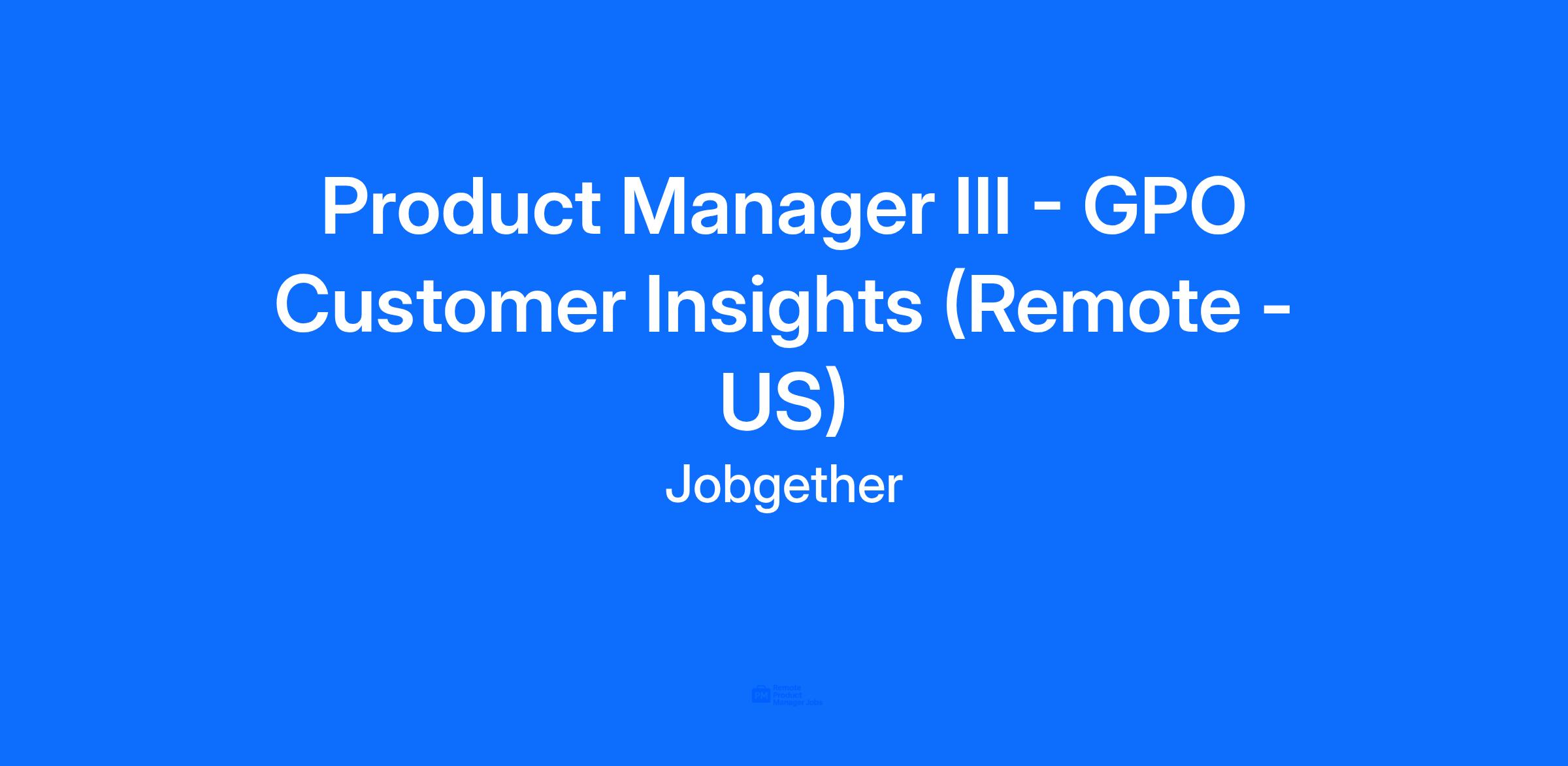 DescriptionThis position is posted by Jobgether on behalf of a partner company. We are currently looking for a Product Manager III โ GPO Customer Insights in United States.