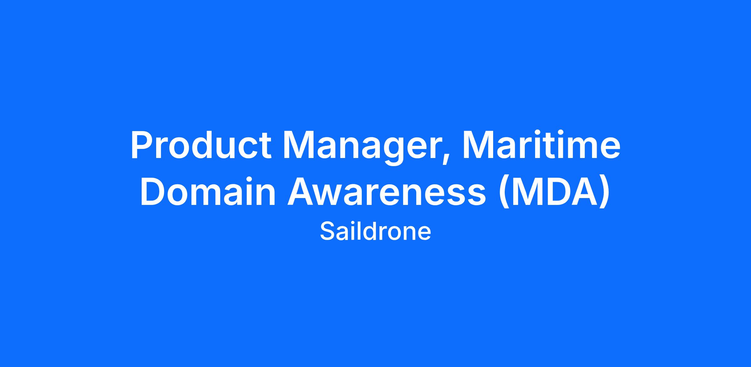 - Define and execute the product strategy and roadmap for Saildrone’s Maritime Domain Awareness (MDA) product line, aligning long-term vision with operational mission needs and emerging threats.
