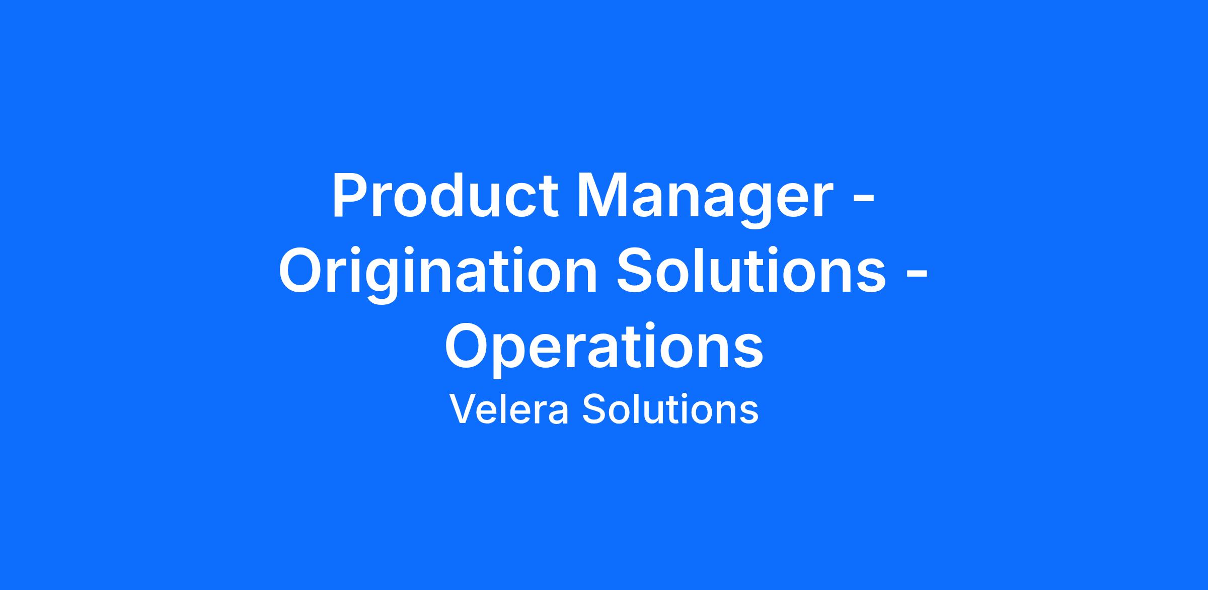 Product Manager - Origination Solutions - Operations