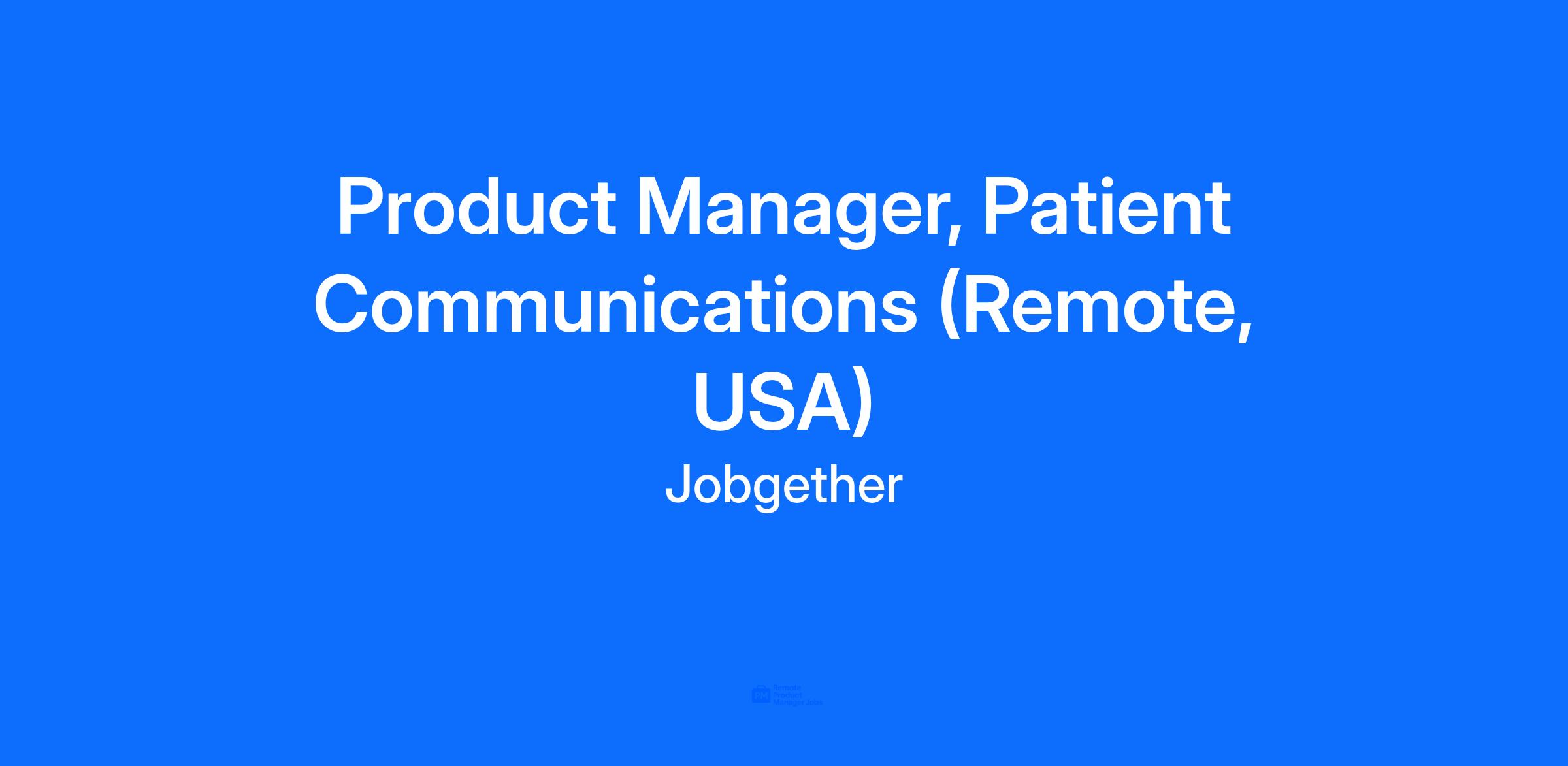 DescriptionThis position is posted by Jobgether on behalf of a partner company. We are currently looking for a Product Manager, Patient Communications in the United States.