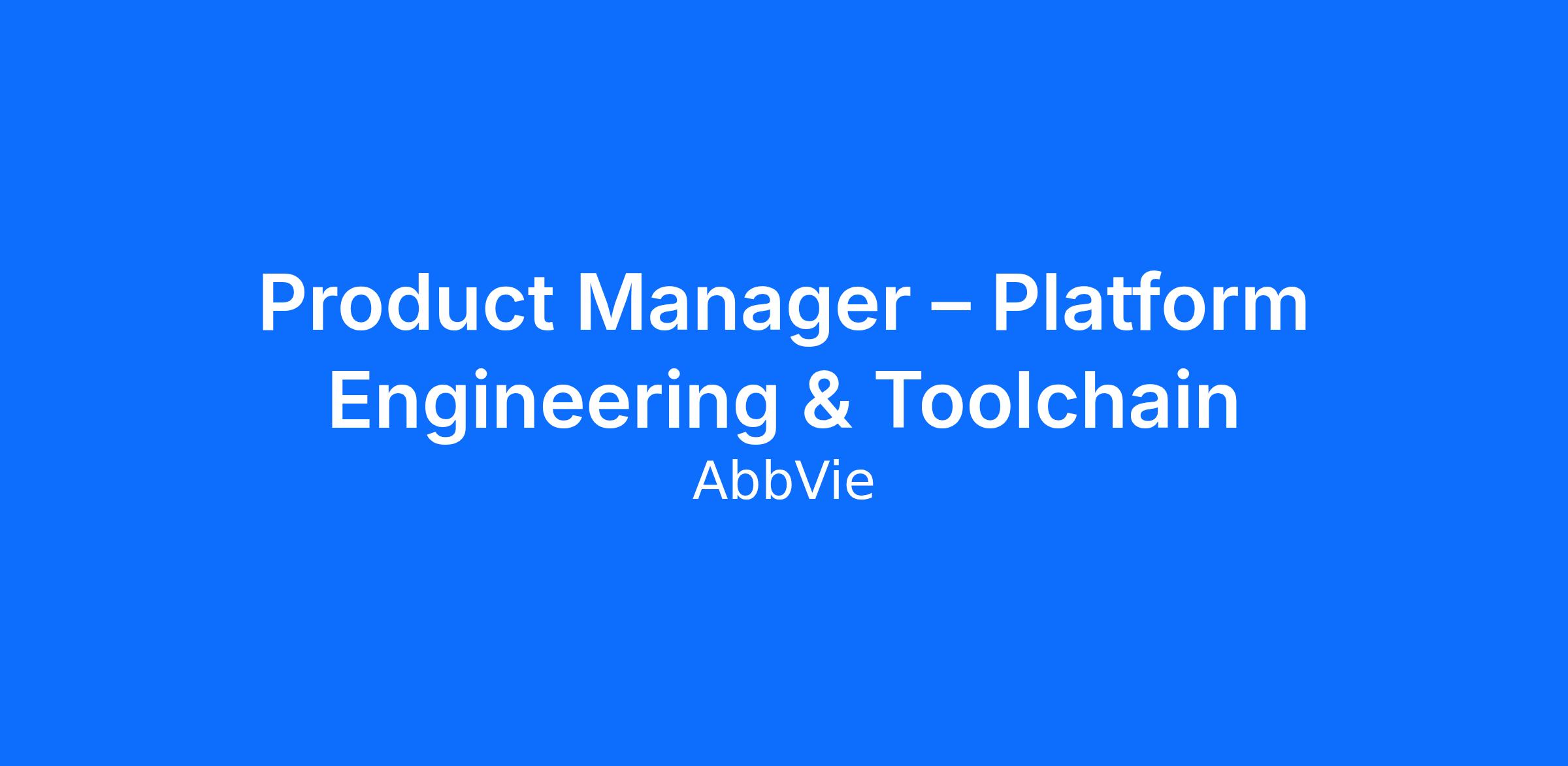 AbbVie’s Business Technology Solutions (BTS) Infrastructure, Architecture, and Innovation group is seeking a Product Manager with experience in Platform Engineering and Developer Experience, Internal Developer Toolchains and DevOps.