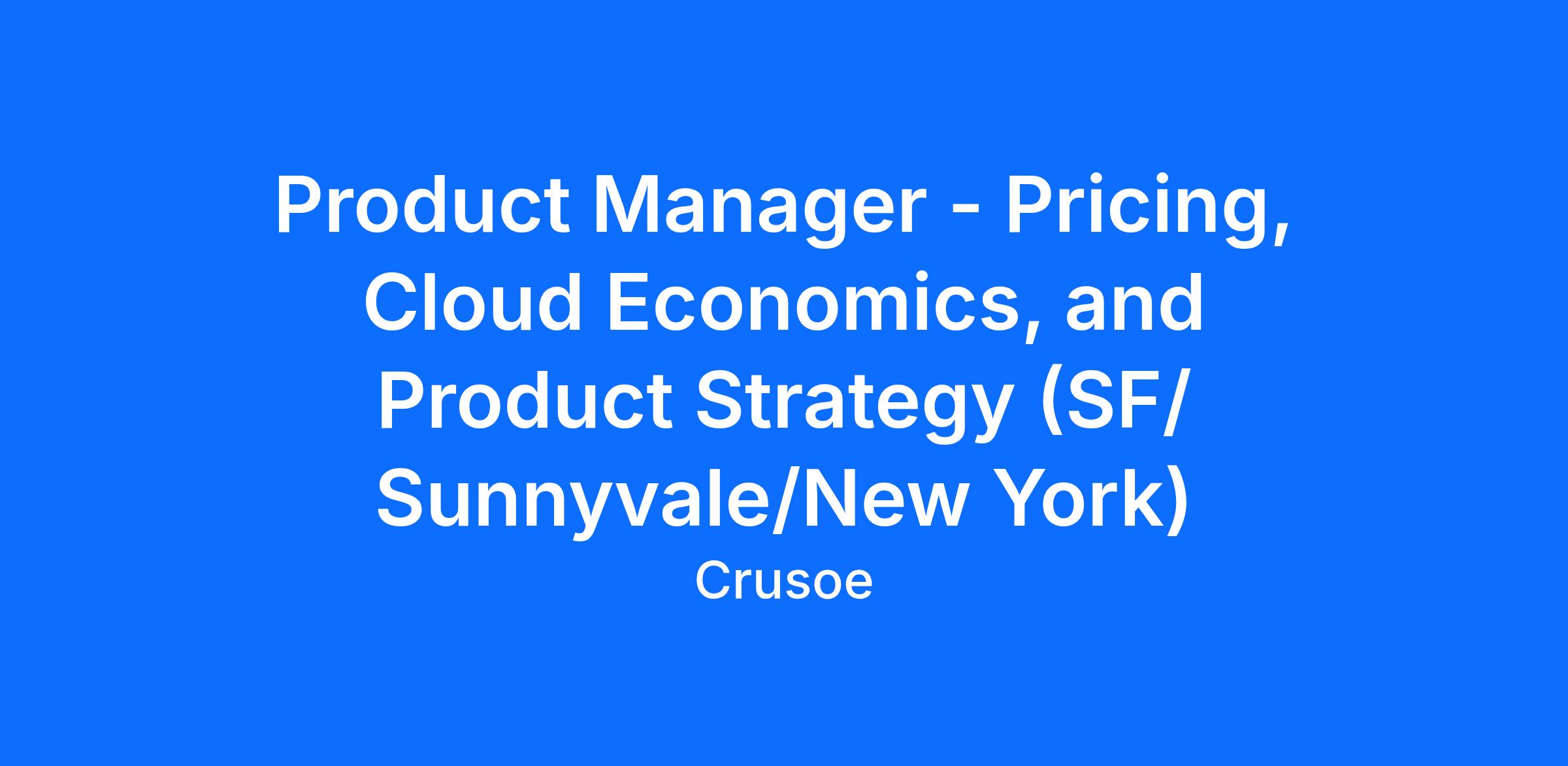 This role is ideal for someone who combines deep analytical rigor with product intuition—able to translate market dynamics, cost structures, and customer willingness-to-pay into pricing strategies that win in the market while maintaining healthy unit economics. You'll work cross-functionally with Finance, Sales, Engineering, and executive leadership to ensure Crusoe's pricing and product strategy positions us as the platform of choice for AI builders.