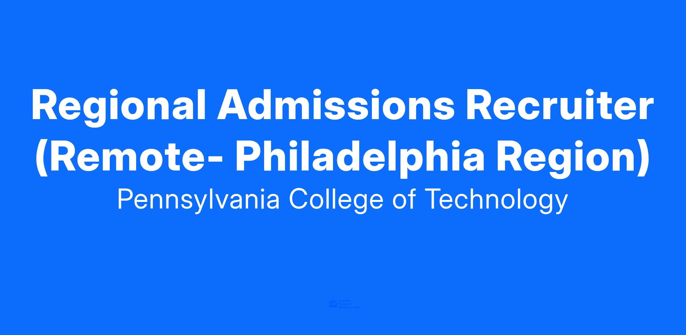 The Regional Admissions Recruiter serves as a member of the Admissions team, focusing on recruiting prospective students and supporting them through acceptance. This position will be based in Philadelphia, Delaware and Southern New Jersey region. The individual will be responsible for developing and executing effective recruitment strategies for assigned geographic territories, which includes planning and conducting recruitment travel, generating inquiries and applications, and building relationships with influencers involved in the college search process. This is a regionally based position which requires the person to work remotely. This position may require some night driving.