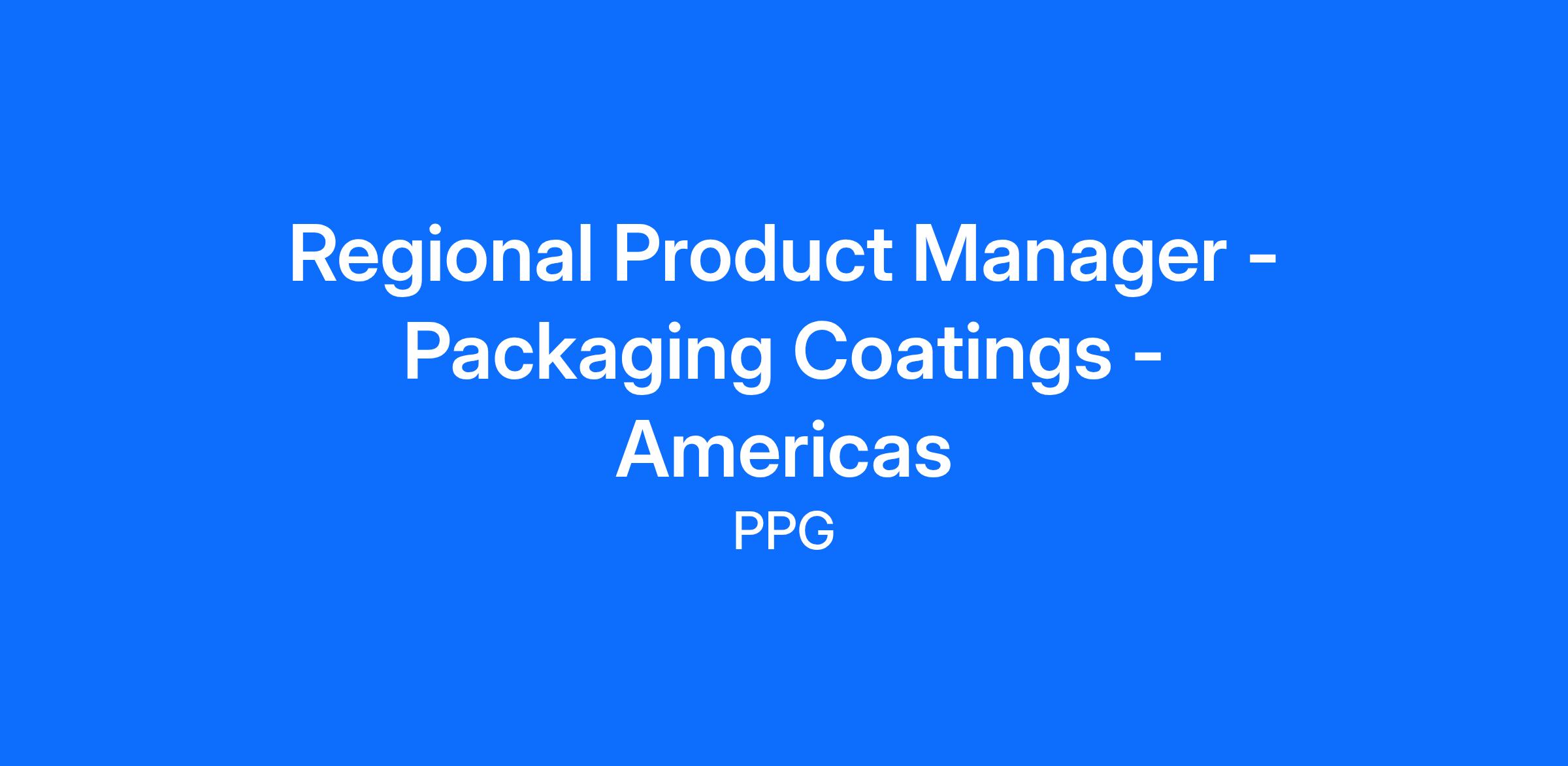 PPG Is looking for an Americas Regional Product Manager to join our Packaging Coatings team! You will be responsible for driving profitable growth by leading the development, commercialization and optimization of the Packaging Coatings regional product offerings through a deep understanding of the dynamics across all segments of Packaging Coatings. You will work a hybrid schedule at our Pittsburgh, PA headquarters. You will report to the Regional General Manager of Packaging Coatings.